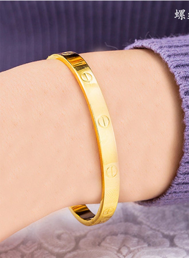 Introducing our stunning Yellow Gold Plated Love Bangle With Screwdriver, the perfect accessory to add a touch of elegance and sophistication to any outfit. This bangle is crafted from high-quality materials and features a beautiful yellow gold plating that is sure to catch the eye. The bangle is designed with a unique screwdriver closure that adds a touch of modernity and functionality to the piece. The Love Bangle is a timeless classic that symbolizes love and commitment, making it the perfect gift for a loved one or a special treat for yourself. The bangle is available in a range of sizes to ensure the perfect fit, and it comes with a screwdriver to make adjusting the size a breeze. Elevate your style with our Yellow Gold Plated Love Bangle With Screwdriver today!