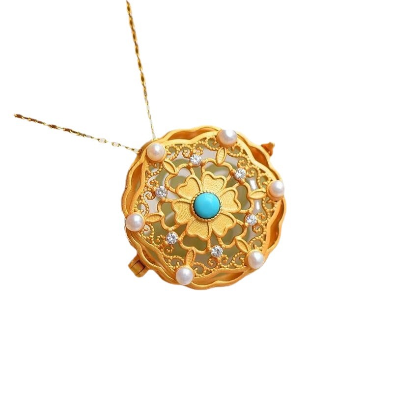 | nameOriginal | Gold-plated Palace Style Ancient Method Gold-plated Sachet Pendant Hollow Imitation Hetian Jade Gawu Box Gold-plated Necklace for Women |