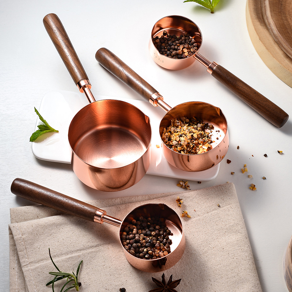 | nameOriginal | Gold-plated stainless steel measuring cup measuring spoon acacia wood handle measuring spoon measuring tools eight-piece kitchen baking tools |
