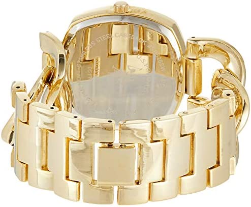 Introducing the U.S. Polo Assn. Women’s Quartz Watch – a chic and sophisticated accessory that will elevate any outfit. The watch boasts a luxurious gold plating that exudes a radiant glow, making it a showstopper that will surely draw compliments. Its intertwined chain bracelet design adds a touch of elegance to its overall aesthetic.
