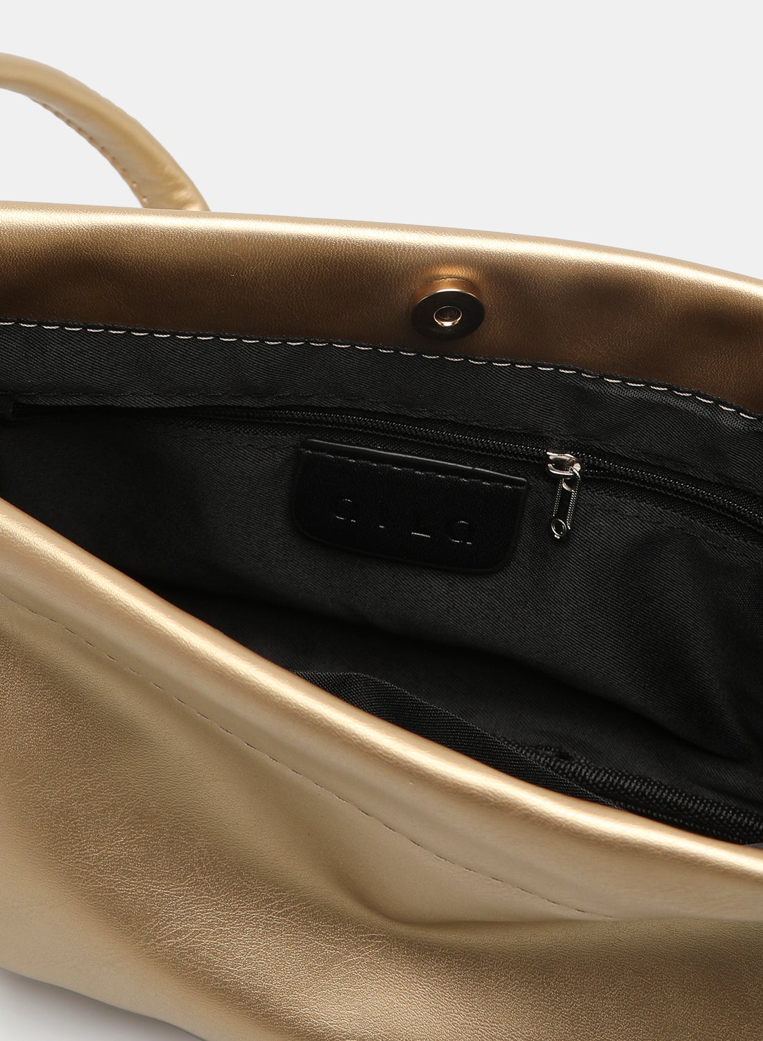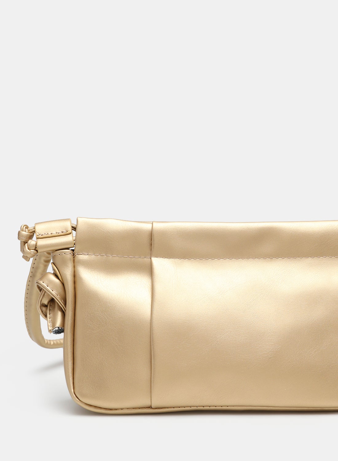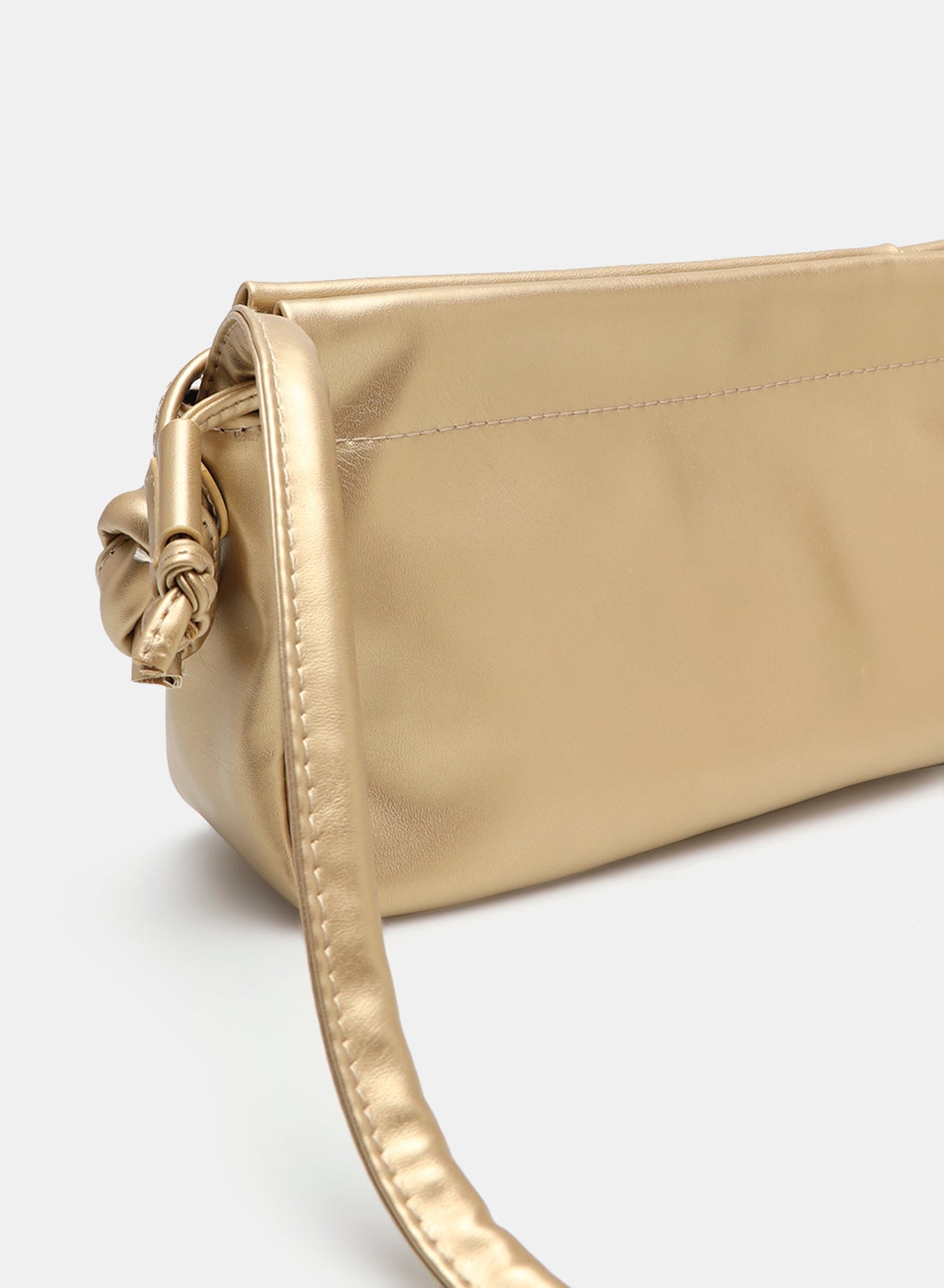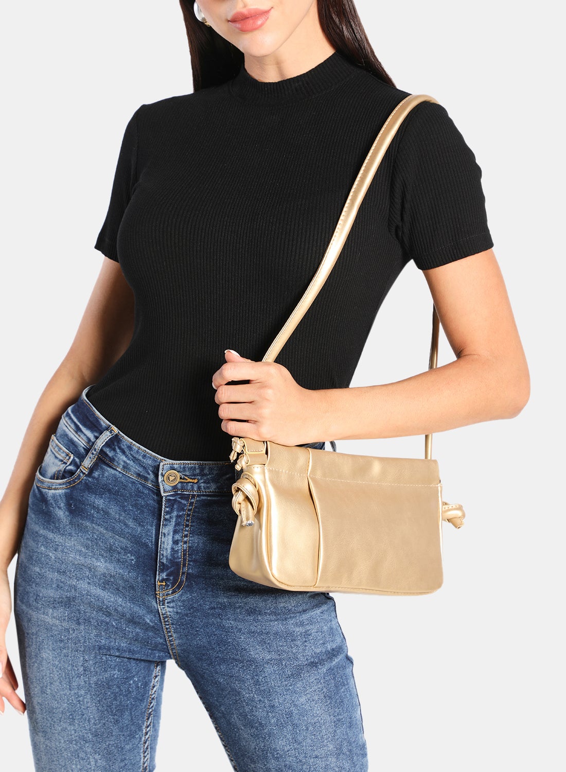 Gold PU Shoulder Bag with Zipper Closure for Women.