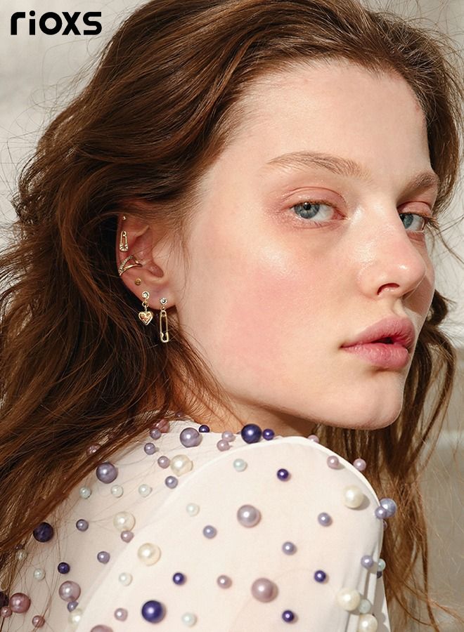 Gold Rhinestone Heart-Shaped Pin Earrings Set – Perfect Gift for Girls on Birthday or Valentine’s Day.