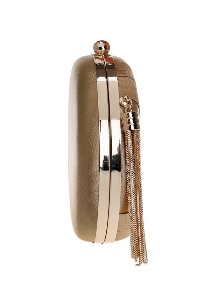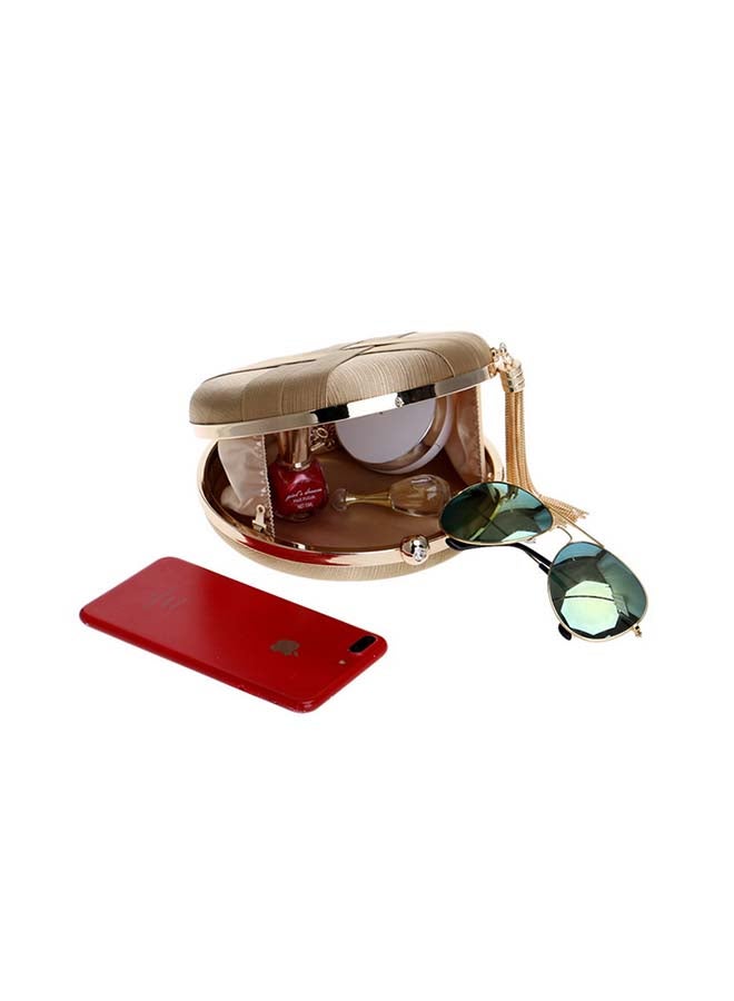 Introducing the Stylish Round Clutch Gold, the perfect accessory to elevate any outfit. This stunning clutch is crafted with high-quality materials and features a sleek, round design that is both modern and timeless. The luxurious gold finish adds a touch of glamour and sophistication, making it the perfect accessory for a night out or a special occasion. The spacious interior provides ample room for all your essentials, while the secure clasp closure ensures your belongings stay safe and secure. Whether you’re dressing up for a wedding or a night on the town, the Stylish Round Clutch Gold is the perfect accessory to complete your look.