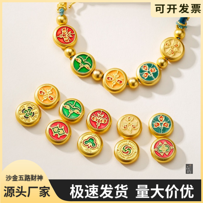 | nameOriginal | Gold shop with sand gold five-way god of wealth accessories thangka drum beads through hole loose beads five-color god of wealth bracelet beads |