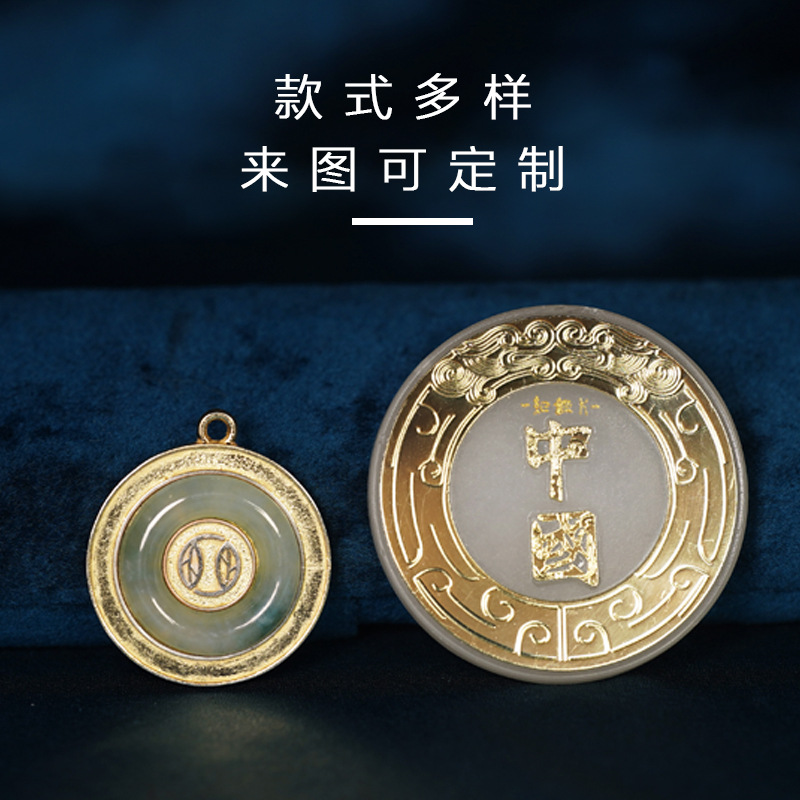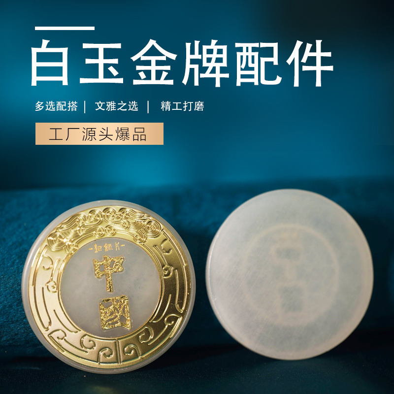 | nameOriginal | Gold Silk Jade Medal Ring Accessories Size Customization Source Factory Batch Processing White Gem Hetian Jade Crafts |