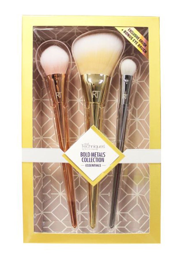 3-Piece Bold Metals Collection Essential Brush Set Gold/Silver