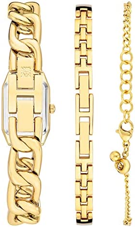 The Anne Klein Women’s Quartz Watch with Analog Display and Stainless Steel Bracelet AK3942GBST Gold is a stunning timepiece that exudes elegance and sophistication. The watch features a sleek gold-tone stainless steel bracelet that is both durable and comfortable to wear. The analog display is easy to read and provides accurate timekeeping, making it perfect for everyday wear or special occasions. The quartz movement ensures precise timekeeping, while the scratch-resistant mineral crystal protects the watch face from scratches and damage. The watch is water-resistant up to 30 meters, making it suitable for everyday use. With its classic design and high-quality construction, the Anne Klein Women’s Quartz Watch with Analog Display and Stainless Steel Bracelet AK3942GBST Gold is a must-have accessory for any fashion-conscious woman.
