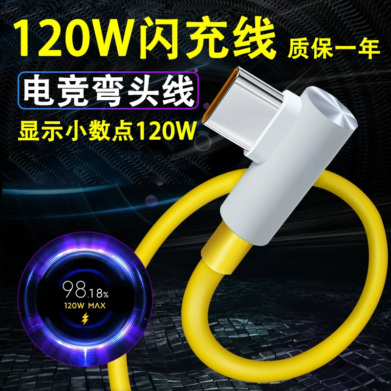 Gold standard 120W elbow fast charging mobile phone charging cable suitable for Redmi k60/k50/k40 Xiaomi 14/12/11/13Ultra e-sports game fast charging data cable supports 67w flash charging limited edition