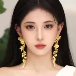 Gold Tassel Earrings Retro Square Round Face Banquet Flowers