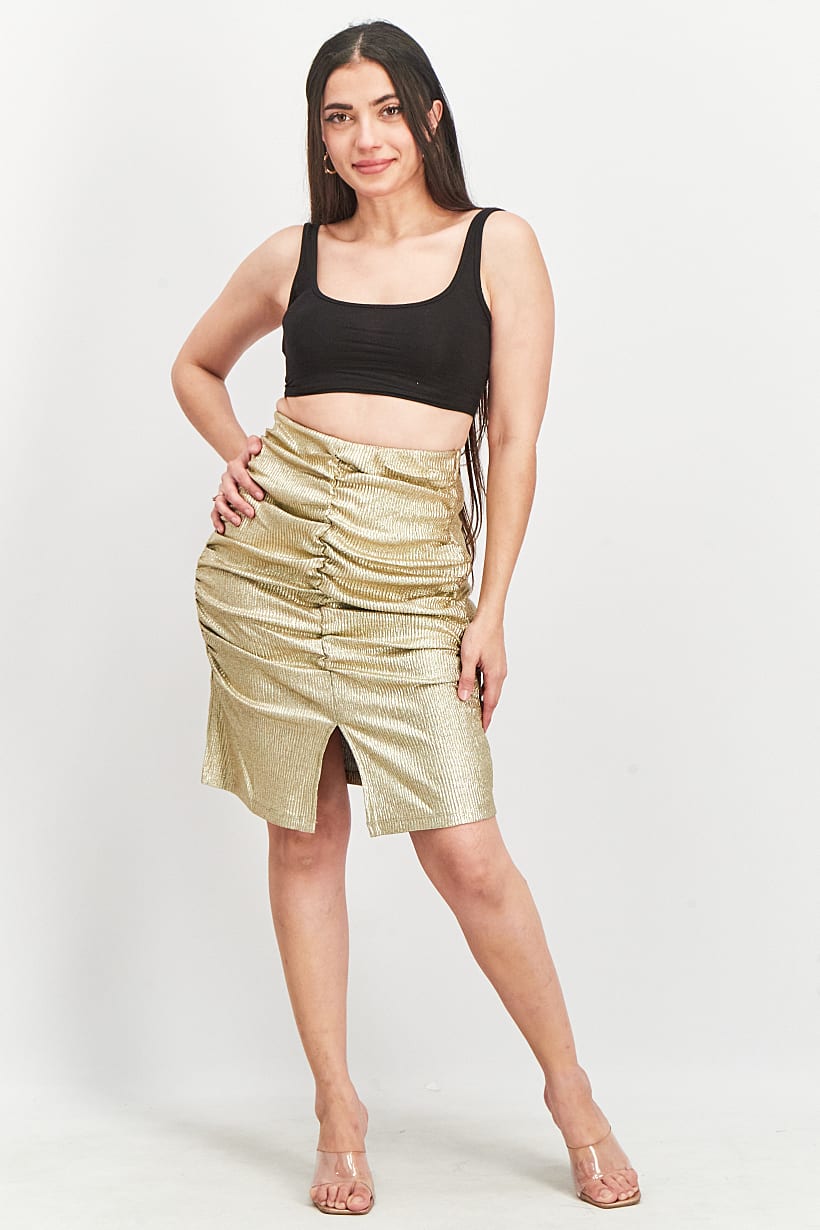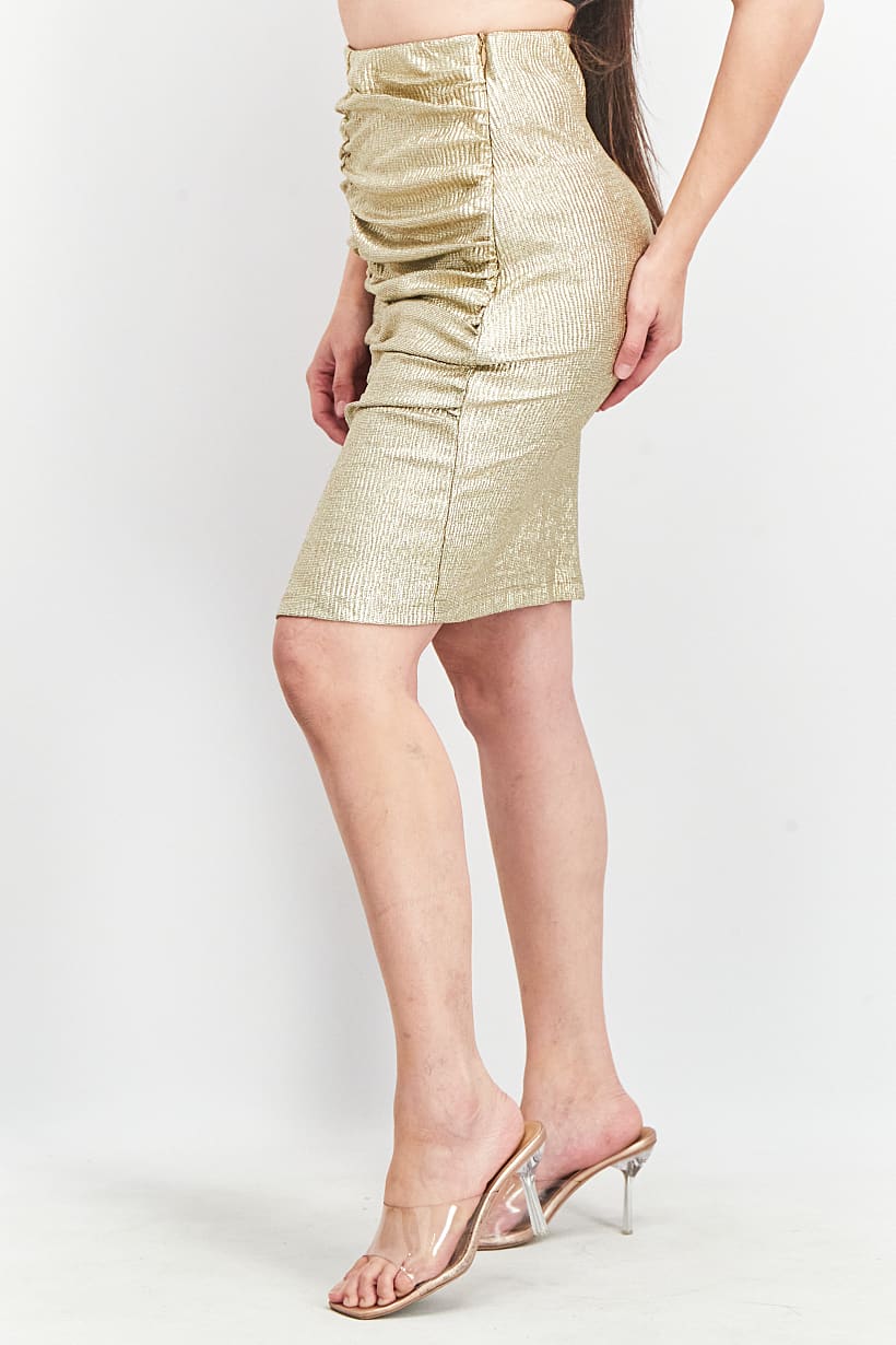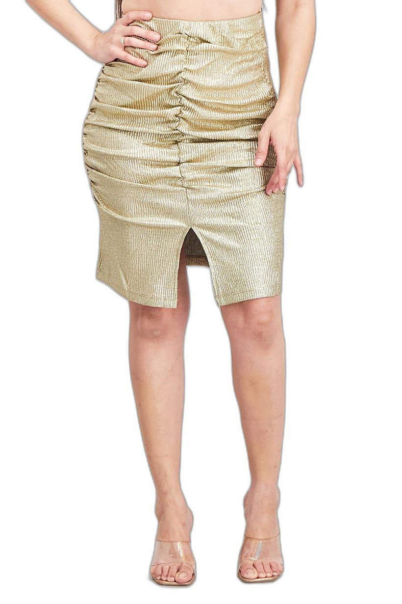 | sub_Categories | Women Clothing, Skirts, women textured pull on ruched midi skirt gold |
