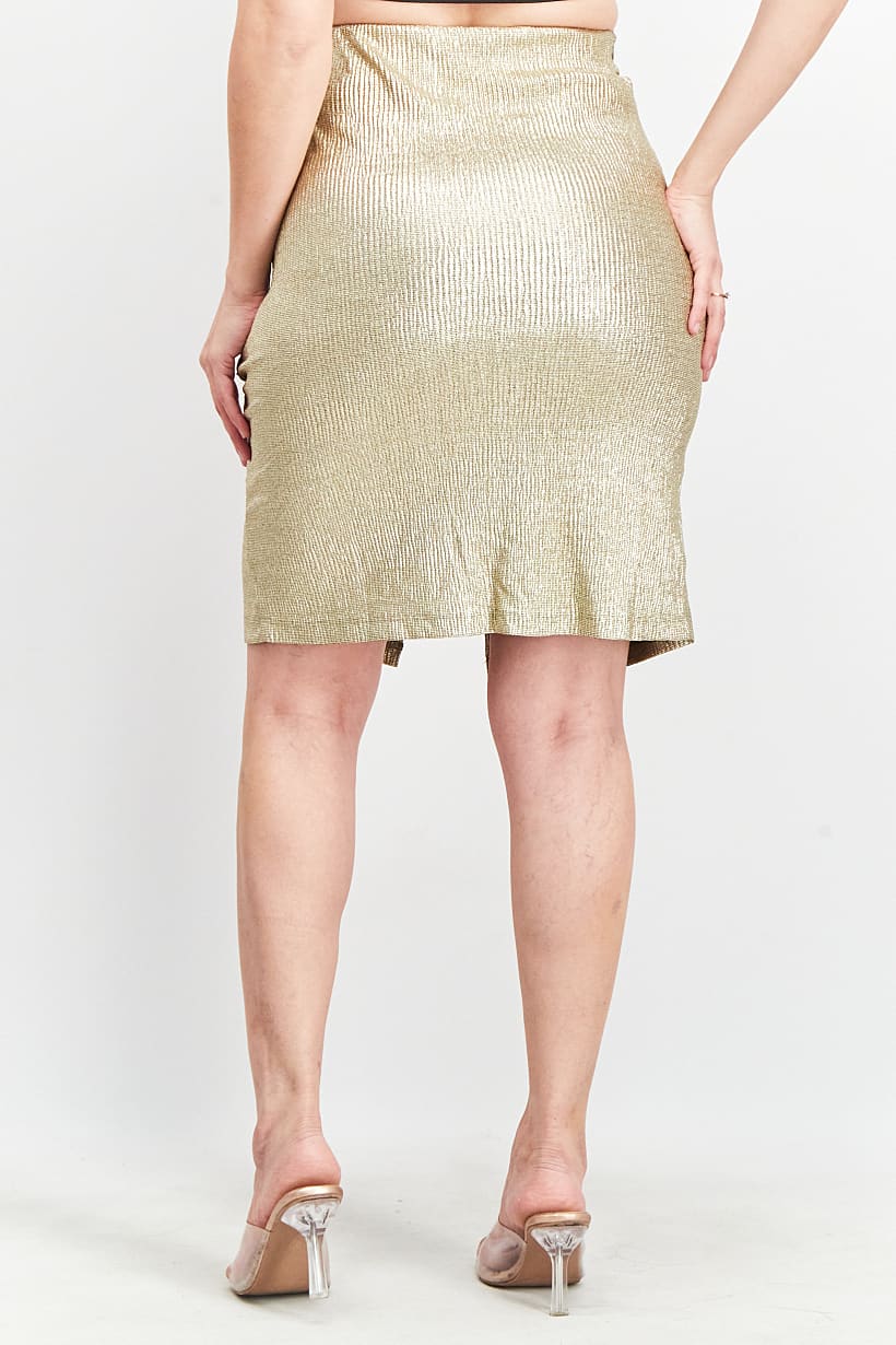 | nameOriginal | Women Textured Pull On Ruched Midi Skirt, Gold |