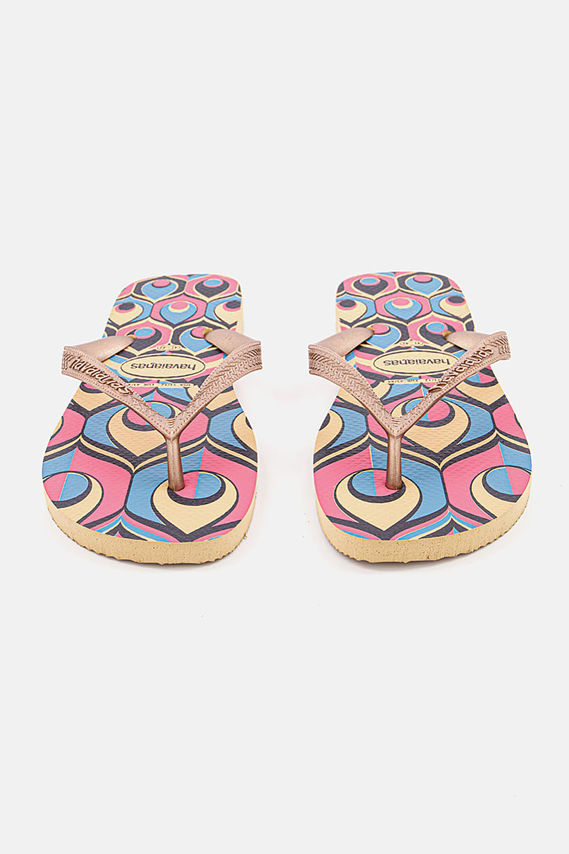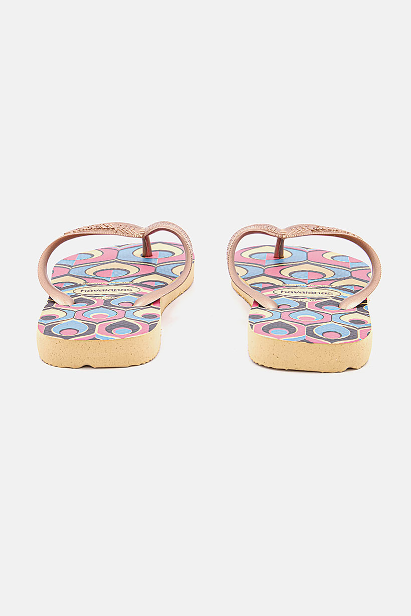 Heel Height : 0.39" / 1 cm, Heel Style : No heel, Ideal For : Women, Insole Features : Rubber Insole, Shoe Closure : Slip on, Sole Material : Rubber sole, Toe Style : Open toe, Disclaimer : Product color may slightly vary due to photographic lighting sources or your monitor settings., Occasion : Casual, Pattern & Print : Graphic print, Shoe Material : Rubber , Color Family : Gold,