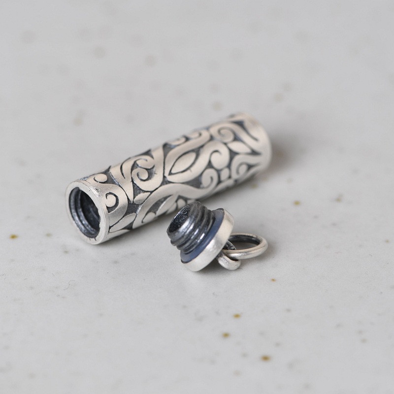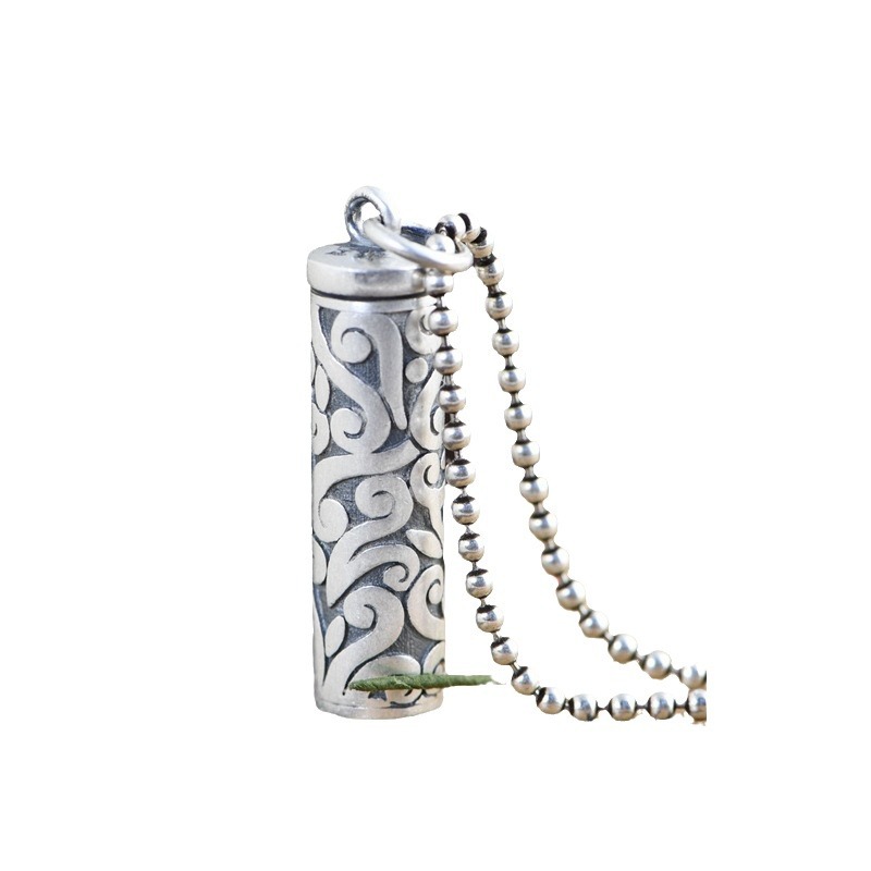 | nameOriginal | Golden Deer King Foot Silver Vintage Ethnic Style Tang Sweed Pattern Matte Gagu Box Simple Cylindrical Silver Pendant for Men and Women |