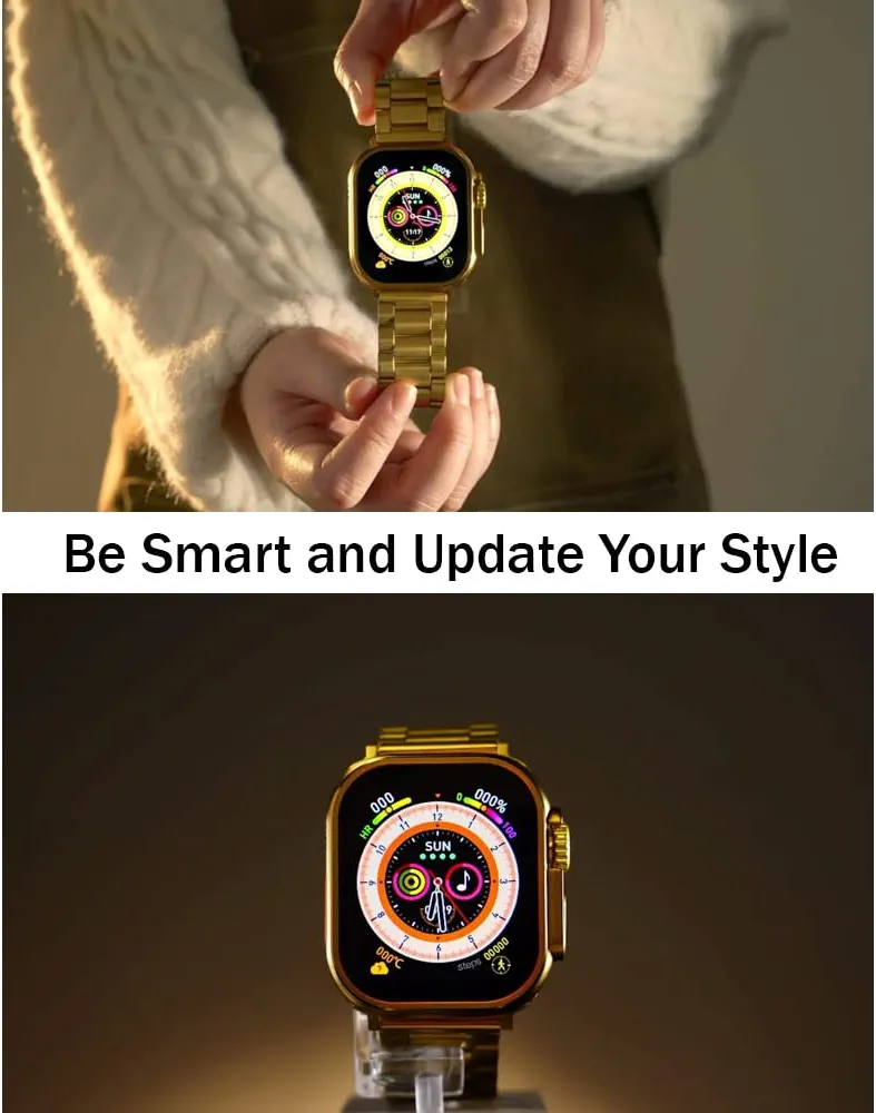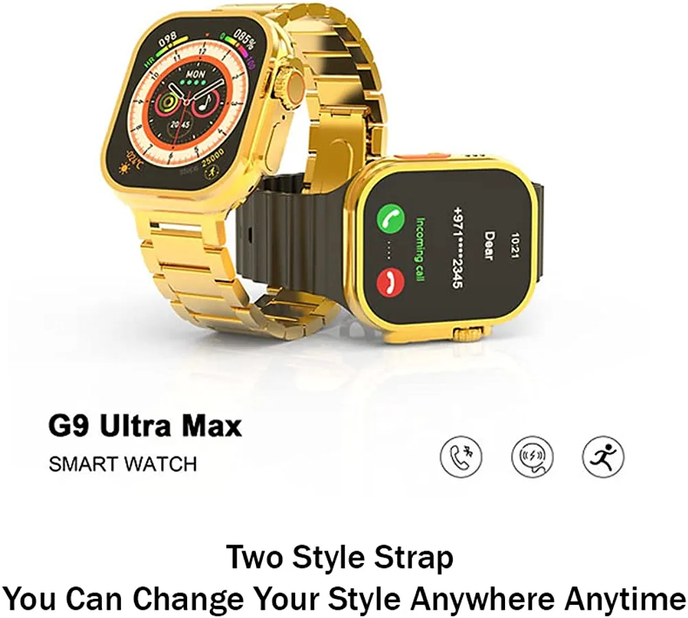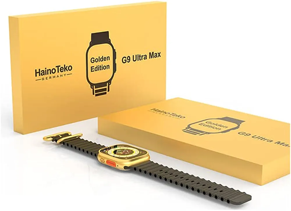 Hainoteko Germany G9 Ultra Max Smart Watch with NFC Always on Display Wireless Charging for Men's and Women's Golden Edition