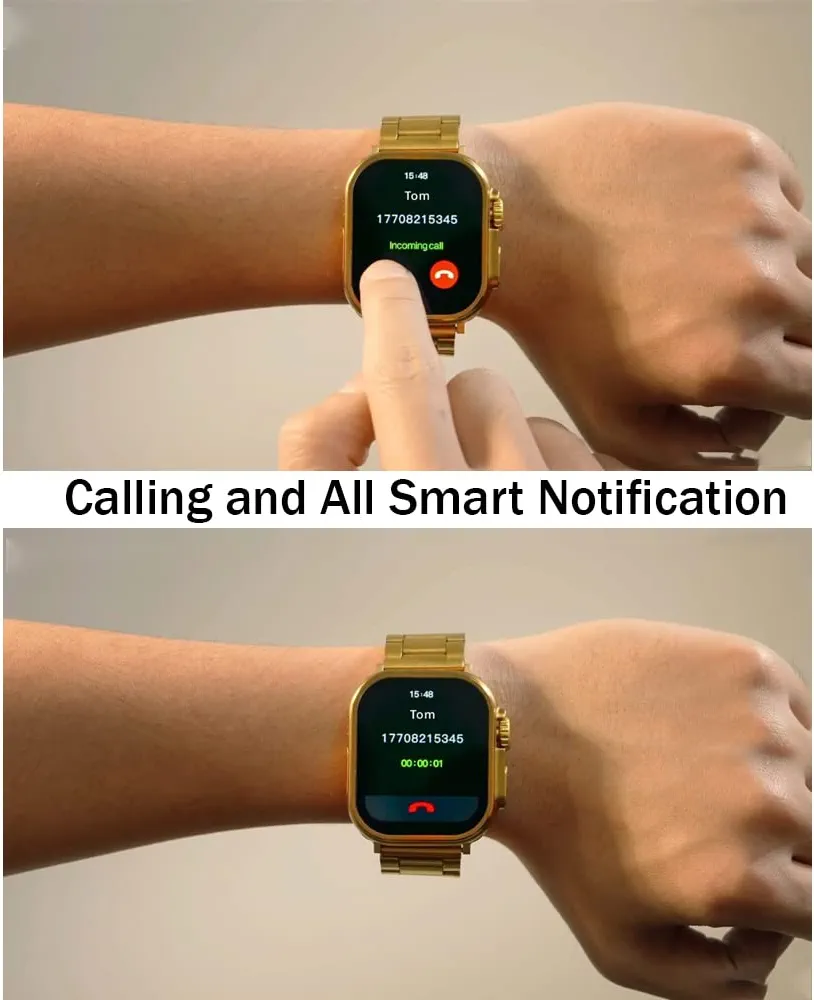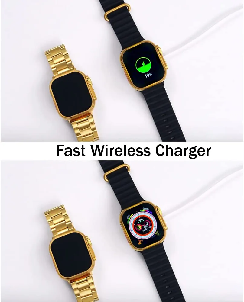 Introducing the Hainoteko Germany G9 Ultra Max Smart Watch, the ultimate accessory for both men and women. This Golden Edition watch is not only stylish but also packed with features that will make your life easier. With NFC technology, you can easily make payments on the go without having to carry your wallet. The Always on Display feature ensures that you never miss an important notification, even when you’re on the move. And with wireless charging, you can say goodbye to tangled cords and messy cables. The Hainoteko Germany G9 Ultra Max Smart Watch is the perfect blend of fashion and technology, making it a must-have for anyone who wants to stay connected and look good doing it.