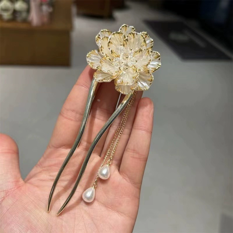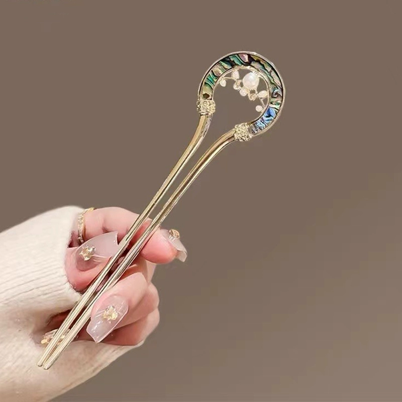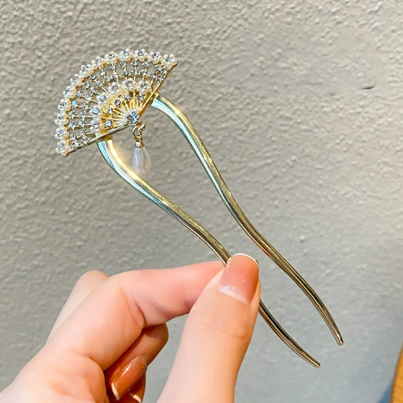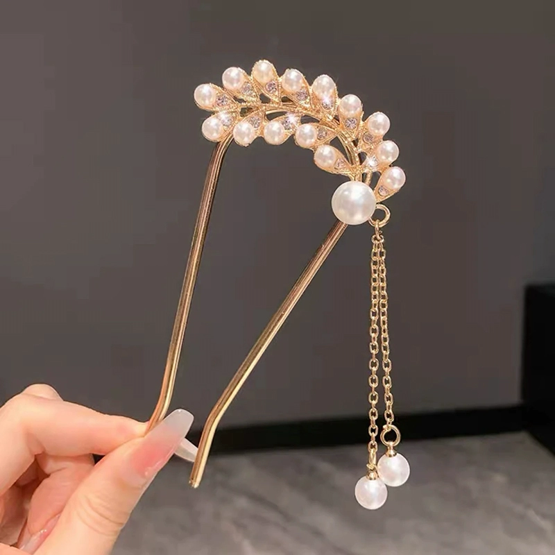 New Chinese U-shaped horse-faced skirt pearls in golden hairpin
