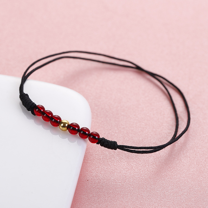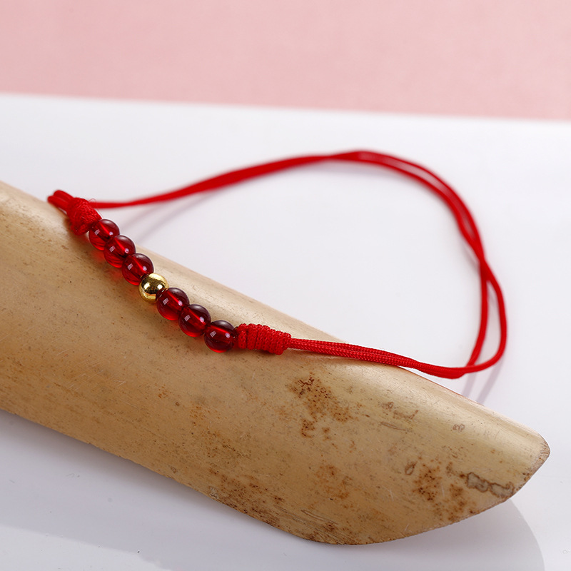 Golden Lucky Beads Ankle Chain Jewelry Accessories Women's Red Rope Antique Mori Style Ankle Rope Red Garnet Korean Style Simple Personality