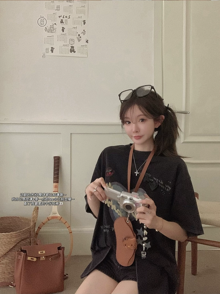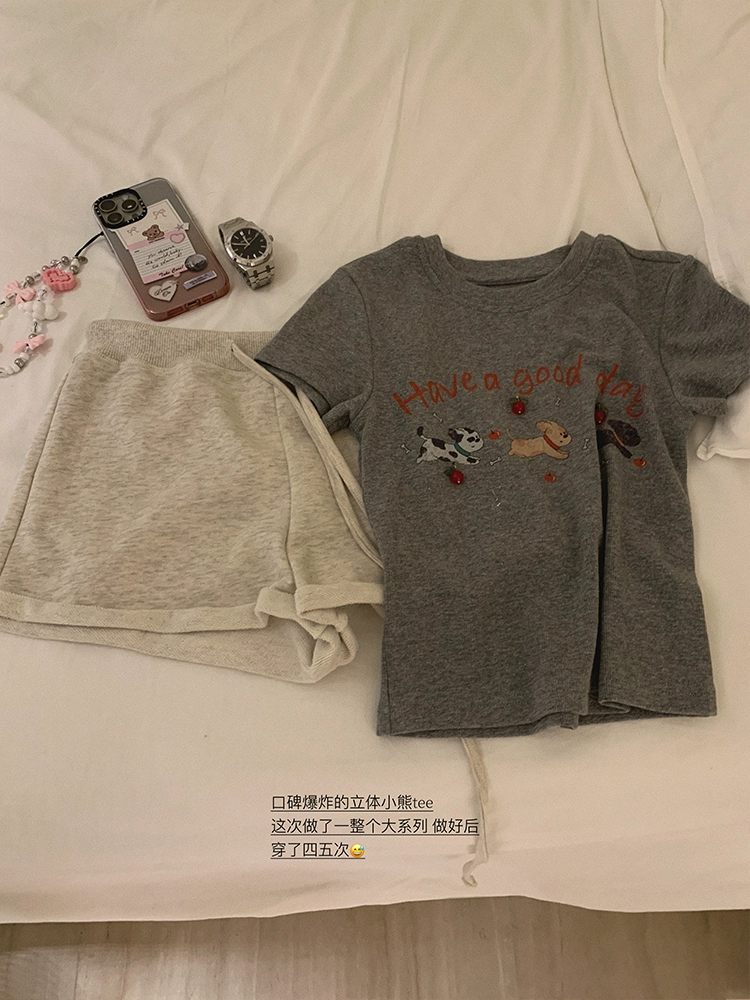 | nameOriginal | Golden mushroom zoo wonderland/three-dimensional pattern cartoon top summer versatile short-sleeved letter T-shirt |