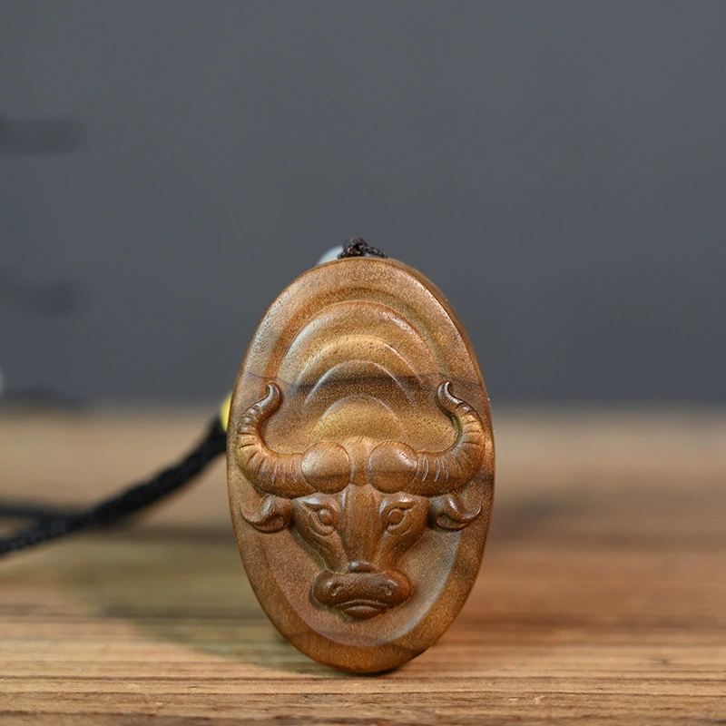 | nameOriginal | Golden nanmu carved zodiac cow brand personalized car key chain pendant wooden handle piece men and women accessories |