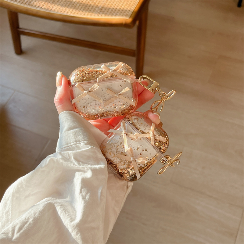 | nameOriginal | Golden quicksand bow suitable for airpods pro2 Apple Bluetooth wireless 2/3 generation earphone case hard shell tide |