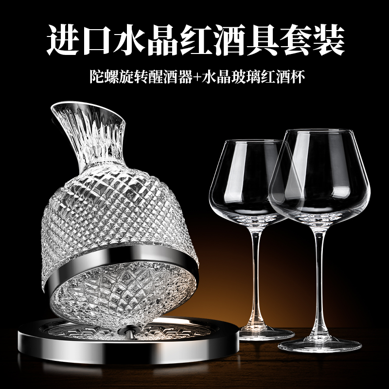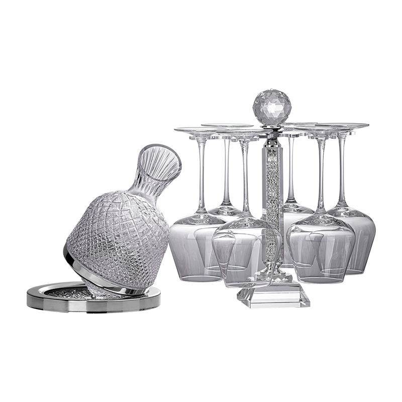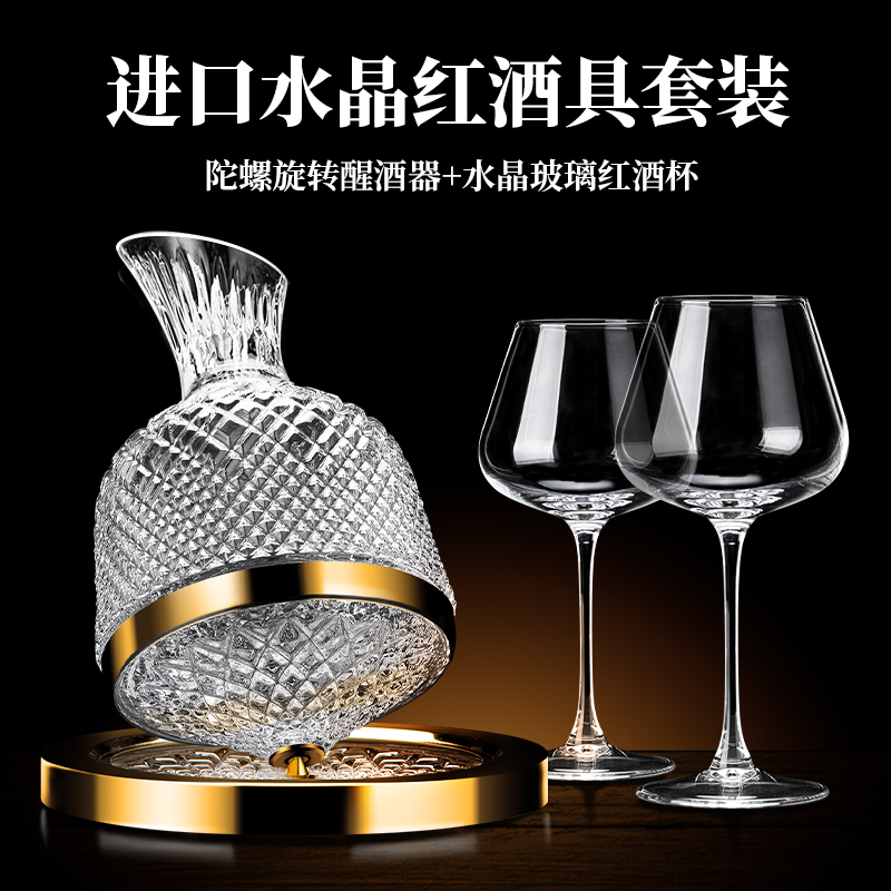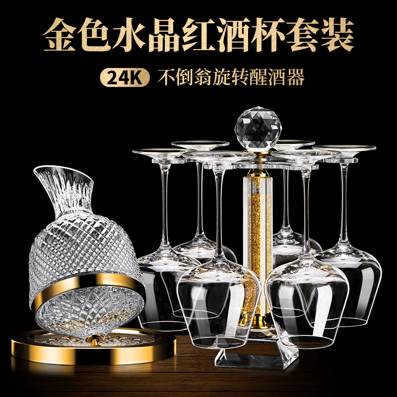 . Golden Red Wine Glass Set Light Luxury Crystal High Foot Wine Glass Household Rotating Decanter Wine