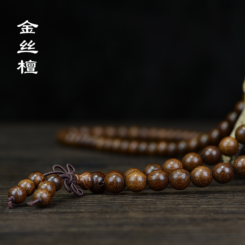 Golden Sandalwood Bracelet 108 Bracelet Shun-grain Old Material Submerged Buddha Beads Wooden Wen Play Sweater Chain Jewelry Handheld Rosary Beads