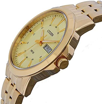 The Citizen Men’s Crystal-Accent Goldtone Stainless Steel Watch is a stunning timepiece that exudes elegance and sophistication. The watch features a goldtone stainless steel band and case, which is both durable and stylish. The crystal accents on the watch face add a touch of sparkle and glamour, making it perfect for formal occasions or everyday wear. The watch also features a date display and is water-resistant up to 50 meters, making it practical for everyday use. With its sleek design and high-quality craftsmanship, this Citizen watch is a must-have for any fashion-forward man.