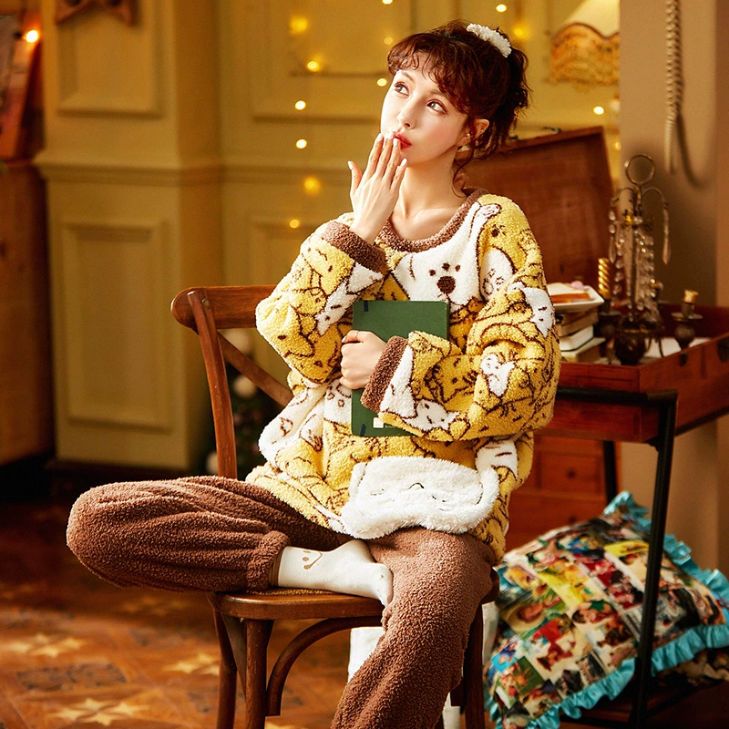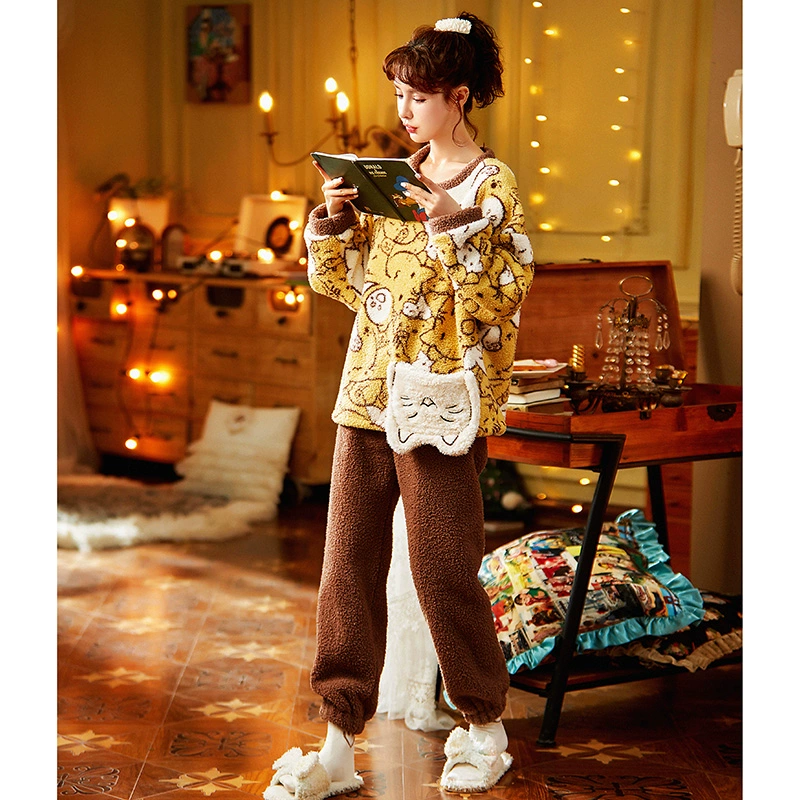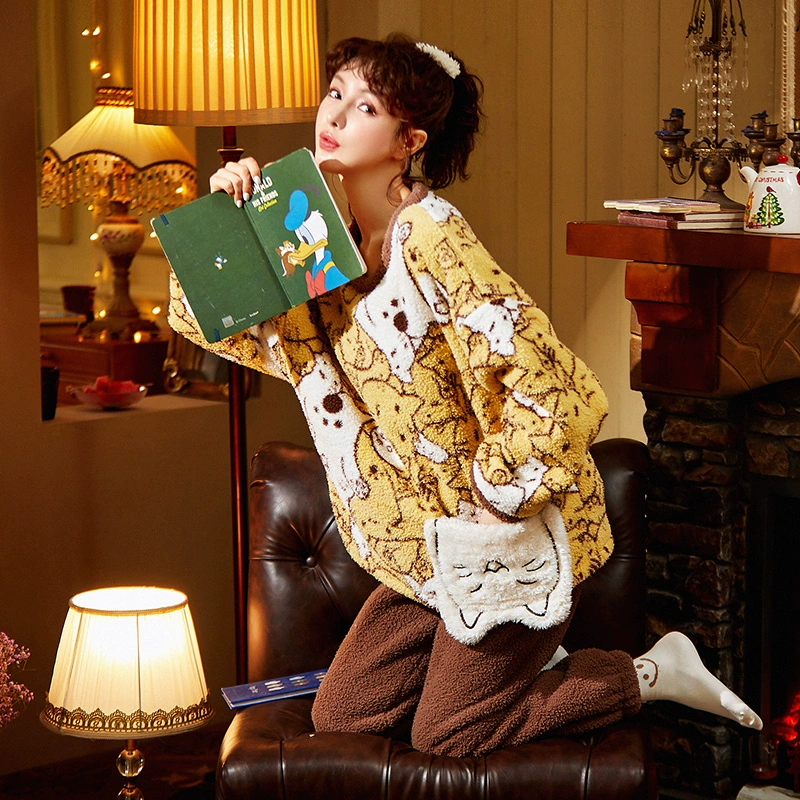 | nameOriginal | Gongdie coral velvet pajamas for women winter plus velvet thickening can be worn outside home clothes cartoon cute loose large size suit |