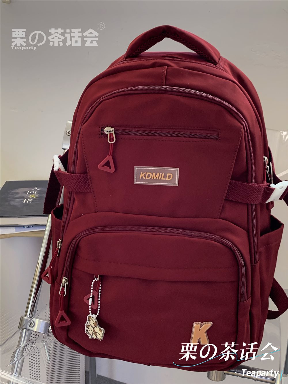 Good back! Large Capacity Backpack Multi-compartment Student Schoolbag Travel Backpack Men's and Women's Popular wine red