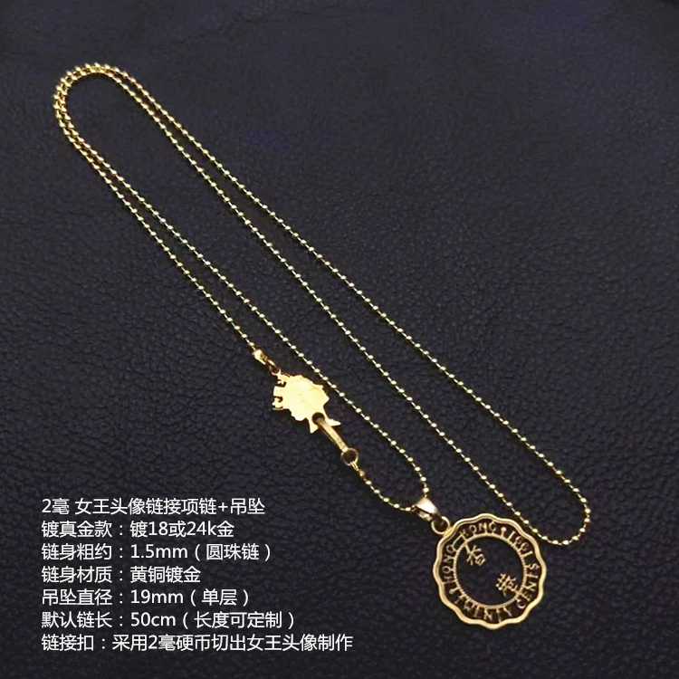 | nameOriginal | Good deal, Hong Kong 2 cent coin, handmade fully hollow necklace pendant given by the Queen to couples and boyfriends |