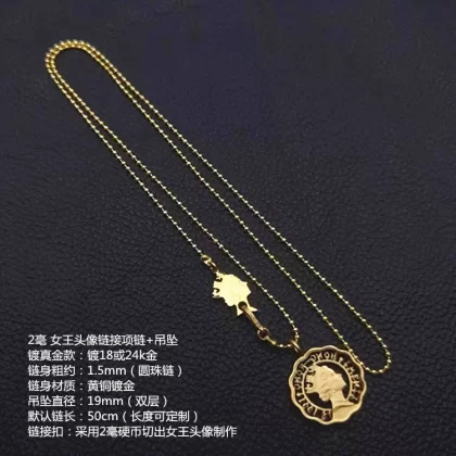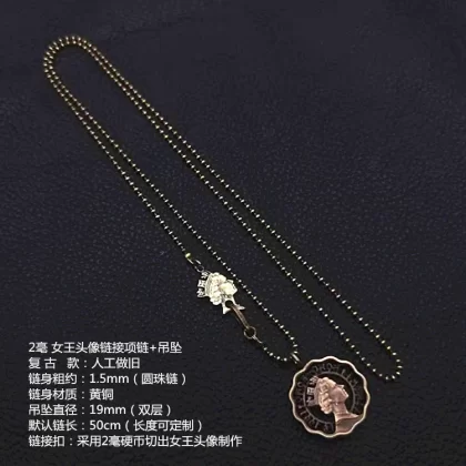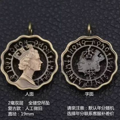 | nameOriginal | Good deal, Hong Kong 2 cent coin, handmade fully hollow necklace pendant given by the Queen to couples and boyfriends |