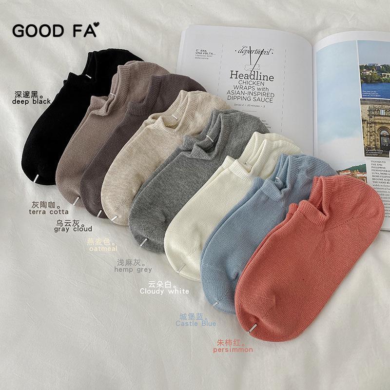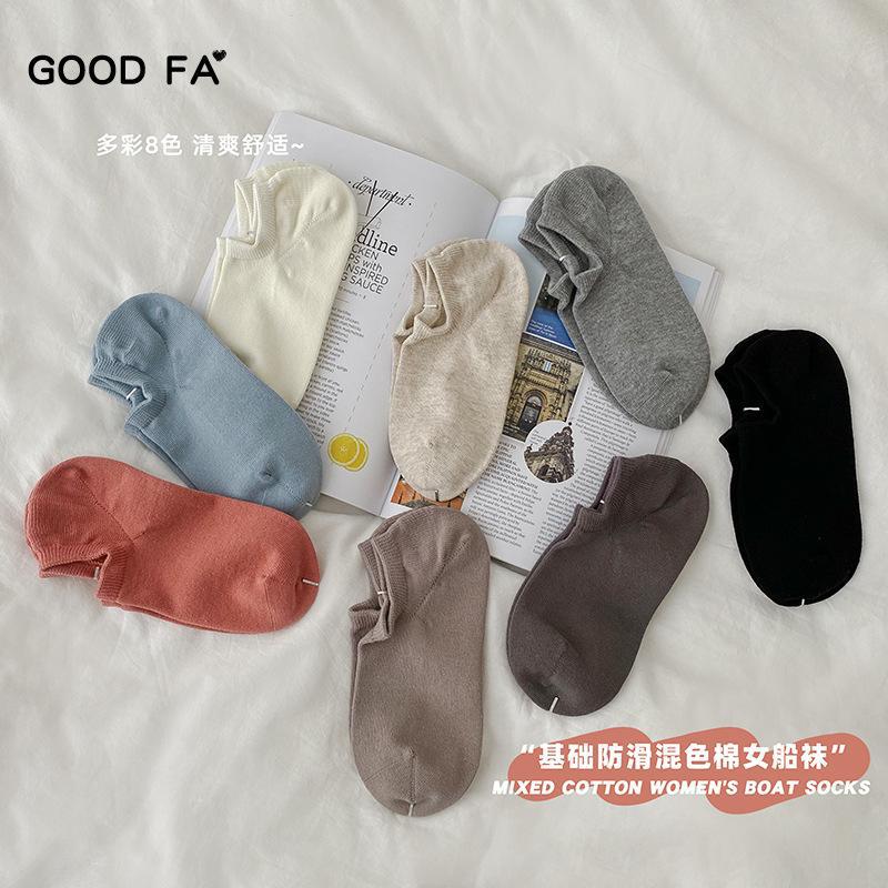 | nameOriginal | GOOD FA Spring/Summer 2024 Basic Unprinted Wind Plain Color Non-slip Mixed Color Cotton Women's Boat Socks |