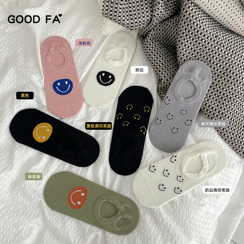 | nameOriginal | GOOD FA spring/summer socks women's combed cotton hand-stitched colorful smiley invisible socks boat Socks women's socks |