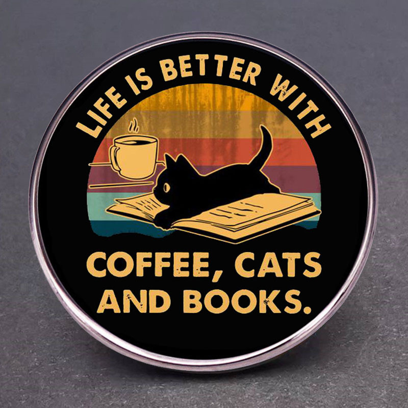 | nameOriginal | Good Life Coffee Cat and book brooch cartoon reading enthusiasts pin badge metal alloy badge accessories |