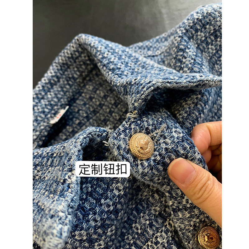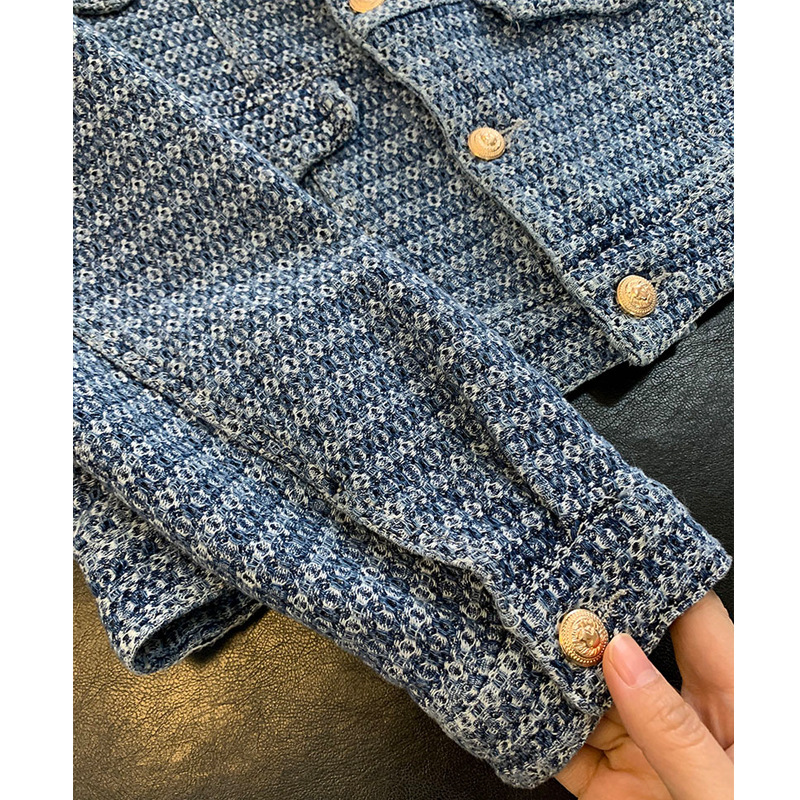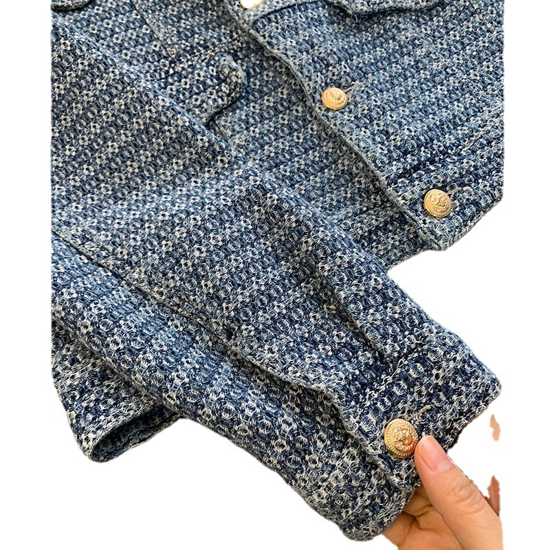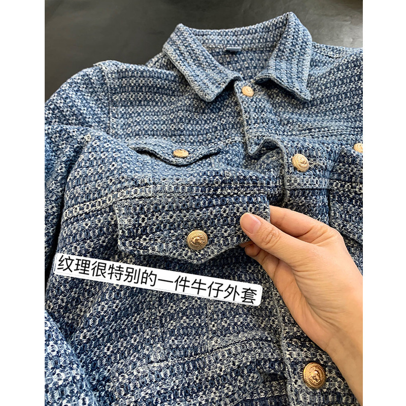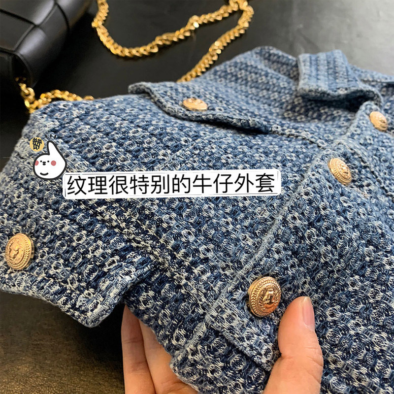 | nameOriginal | Good-looking, heavy-duty woven, loose contrast color retro gold buckle Denim coat for women early spring |