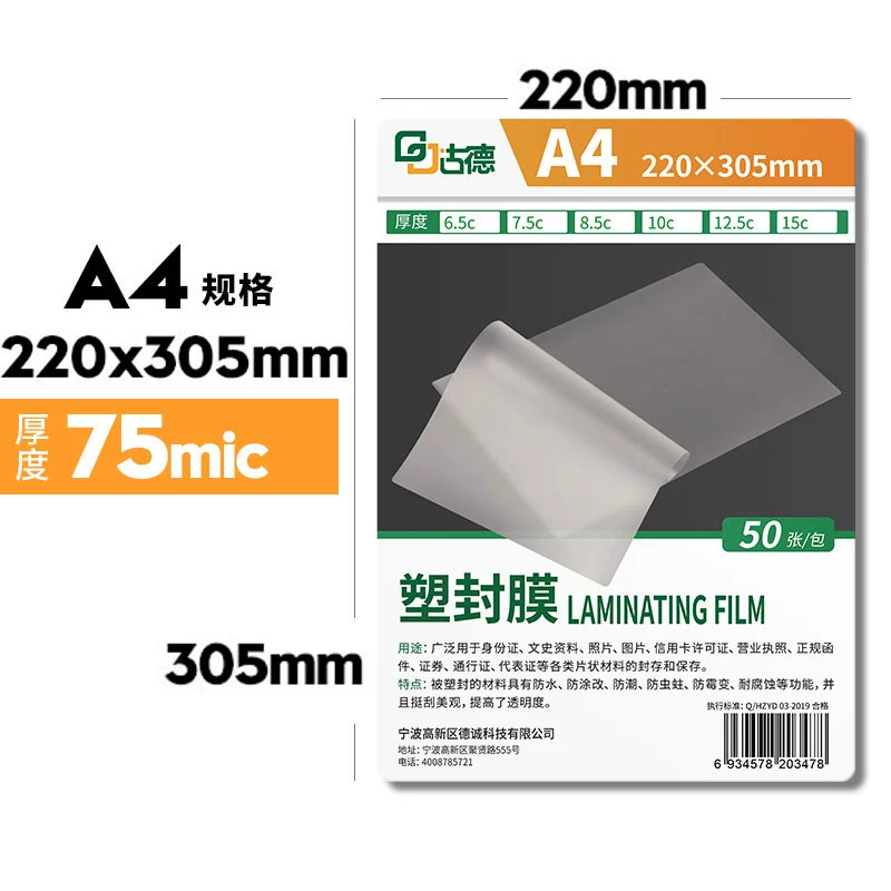 | nameOriginal | Goode A4 plastic sealing film protection card thickened plastic film photo card protection film sealing machine plastic film thermoplastic bag heat shrinkable film high-gloss heat shrinkable film bag paper transparent heat shrinkable film plant specimen heat sealing film |