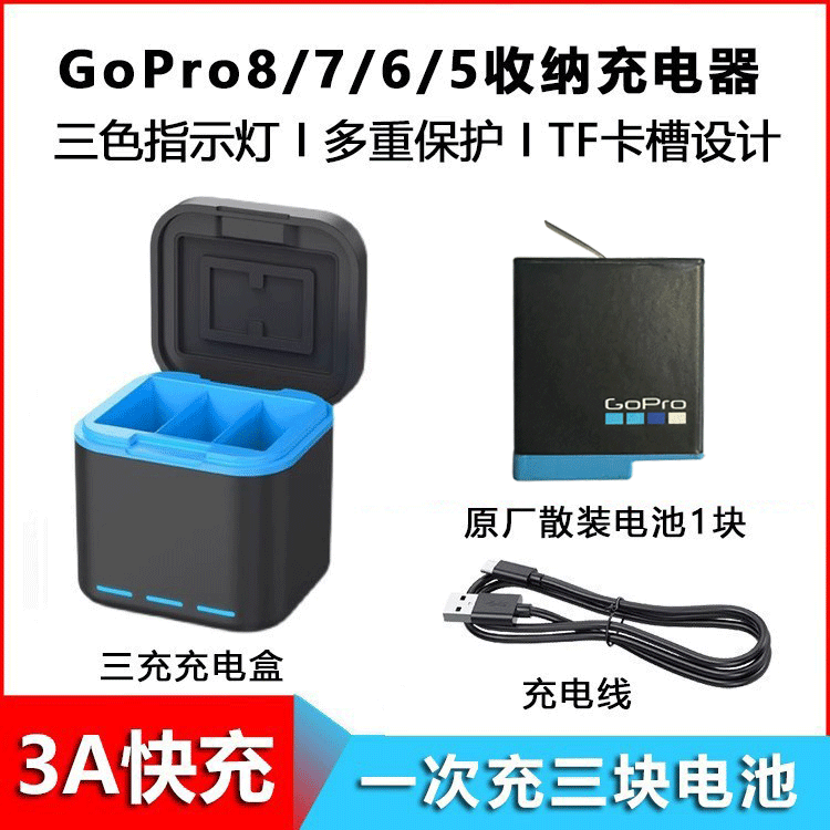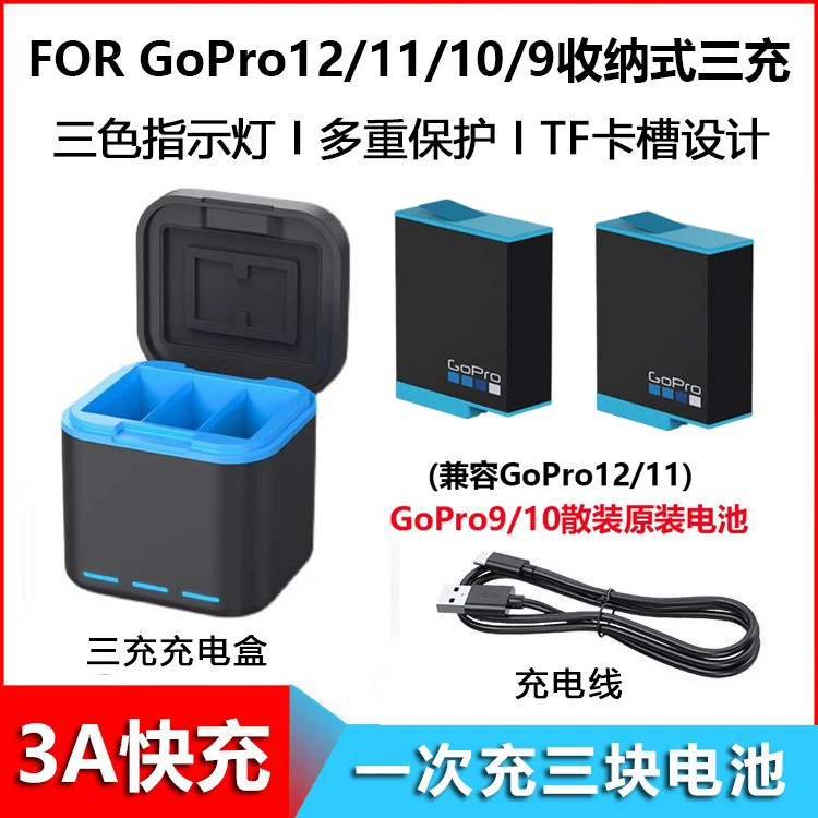 GoPro12/11/10/9/8/7/5/6 original battery charger dual charging max charging box go pro accessories