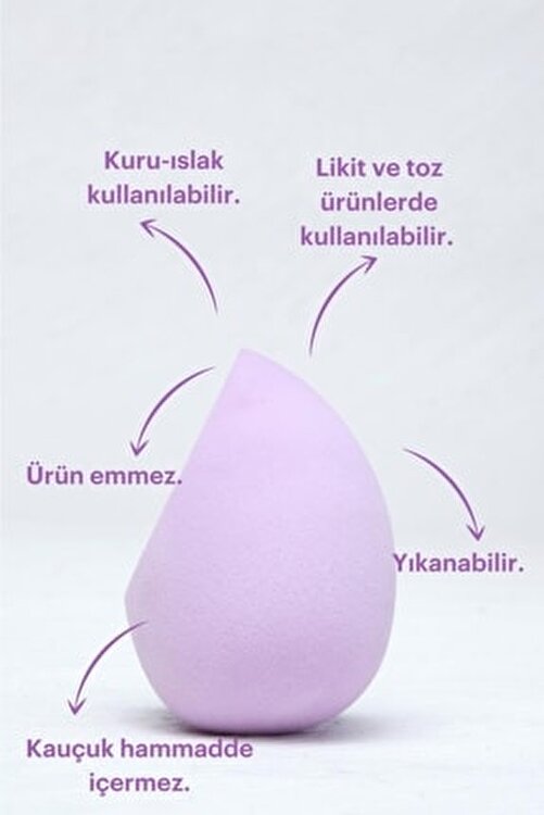 you can use it with all products in liquid and cream form (concealer, foundation, blush, brightener, etc.). – When the sponge is used wet, the lid should be left open for a while when put in the box so as not to mold. Dry Use – In dry use, you can get better results in thin and liquid products as structure. – Do not forget to clean the sponge you use without soaking and washing it thoroughly with soap after the end of application. Product Contents: Does not contain rubber raw material. Product Benefits: – Does not absorb the product. – Provides easy application. – Has a multifunctional design that easily reaches every area on your face. – Provides a flawless complexion makeup.