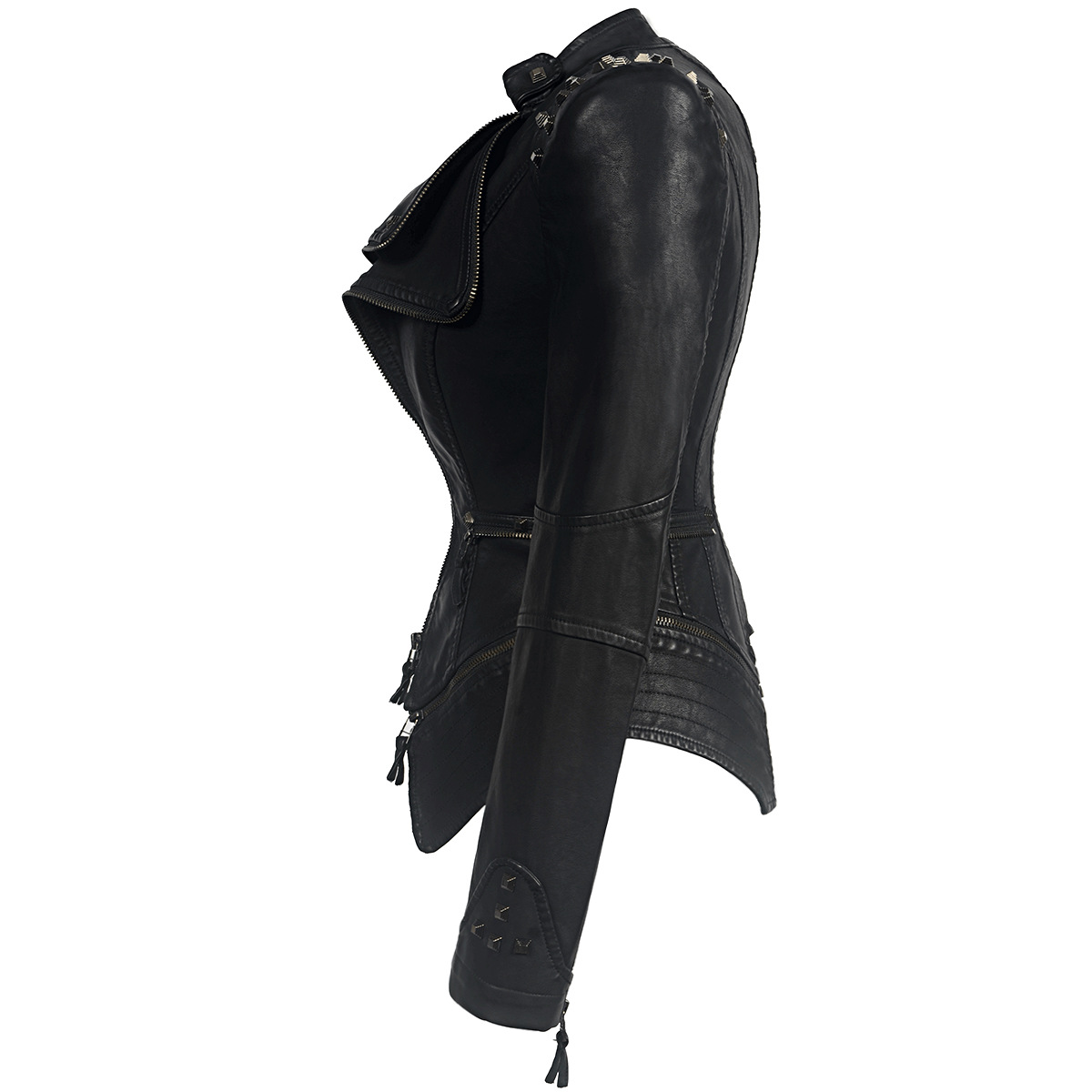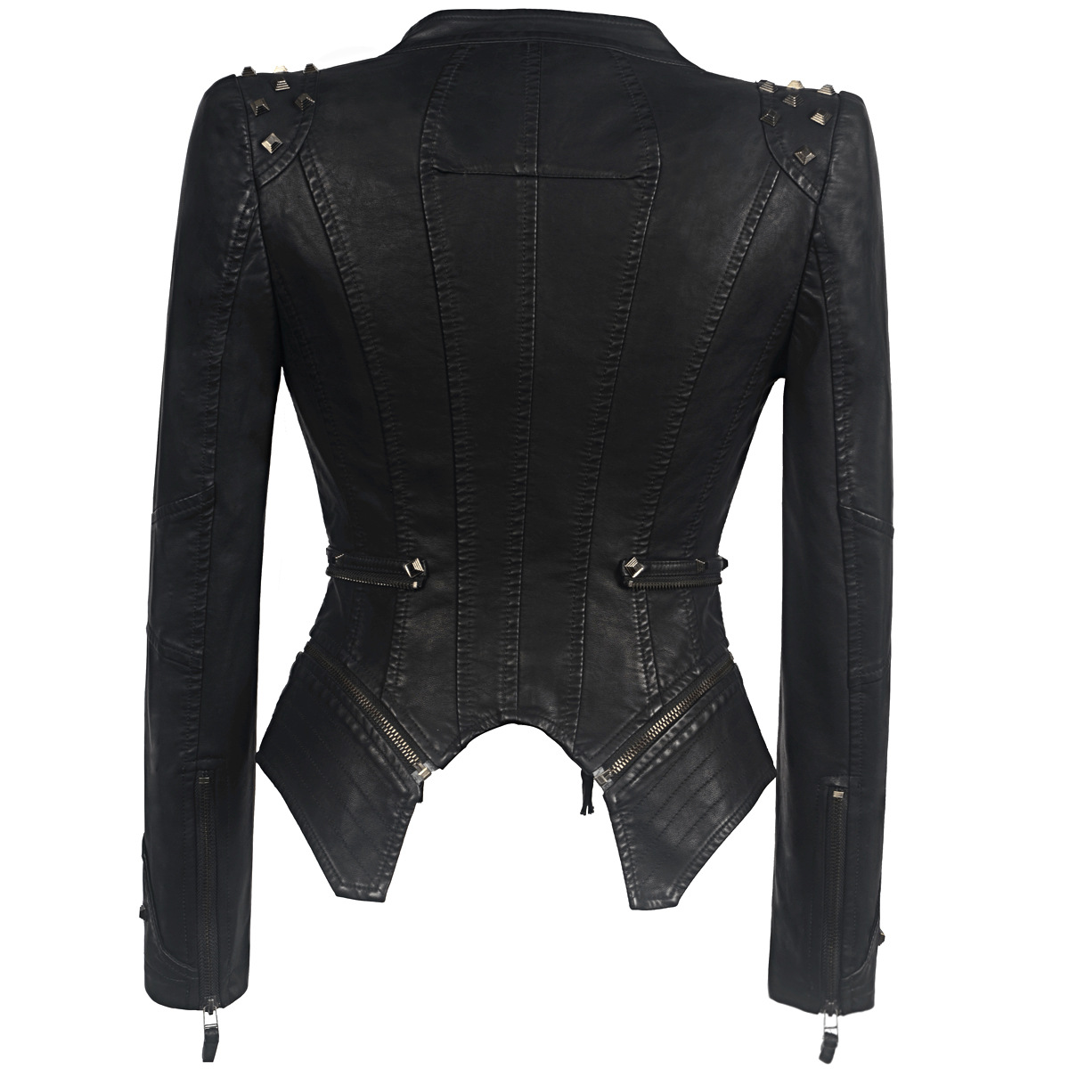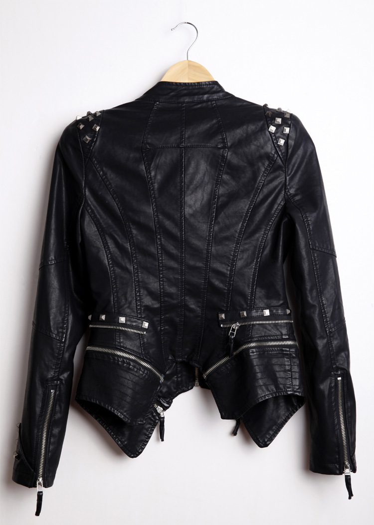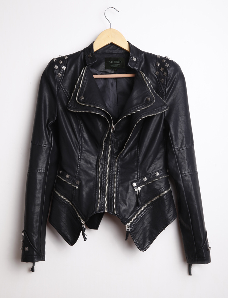 Gothic style women’s clothing new autumn European and American style shrug rivet slim waist tight washed leather motorcycle leather PU