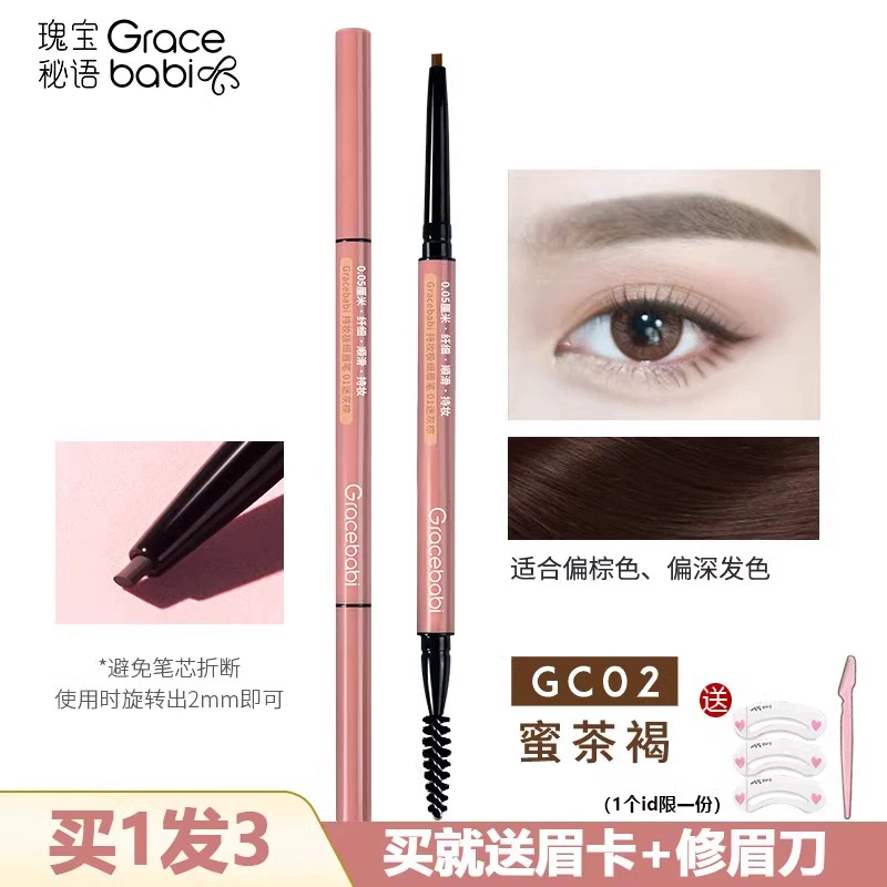 Gracebabi dyed eyebrow cream double-headed eyebrow pencil two-in-one light color waterproof long-lasting non-fading brown wild eyebrow girl