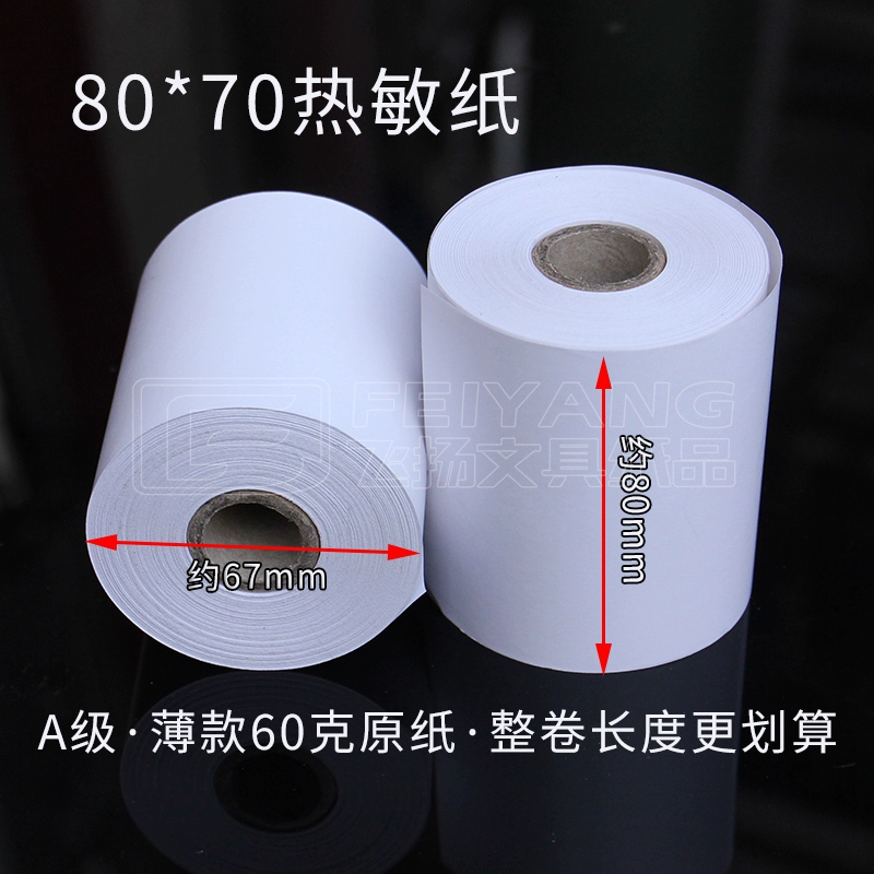 | nameOriginal | Grade A base paper 80*70 (diameter about 67) thermal paper printing paper thermal cashier paper take-out receipt |