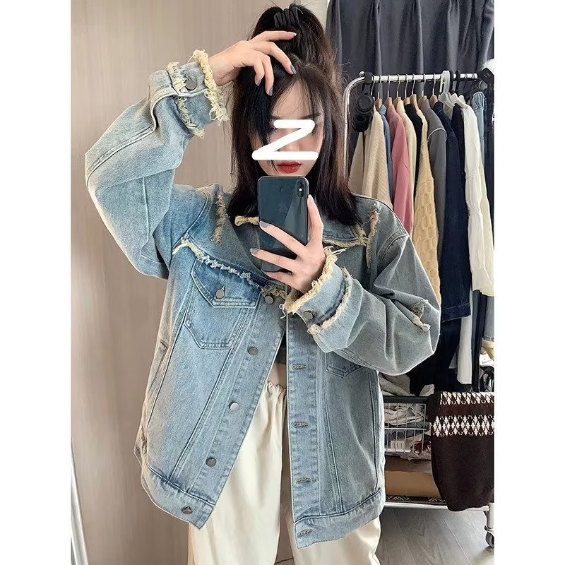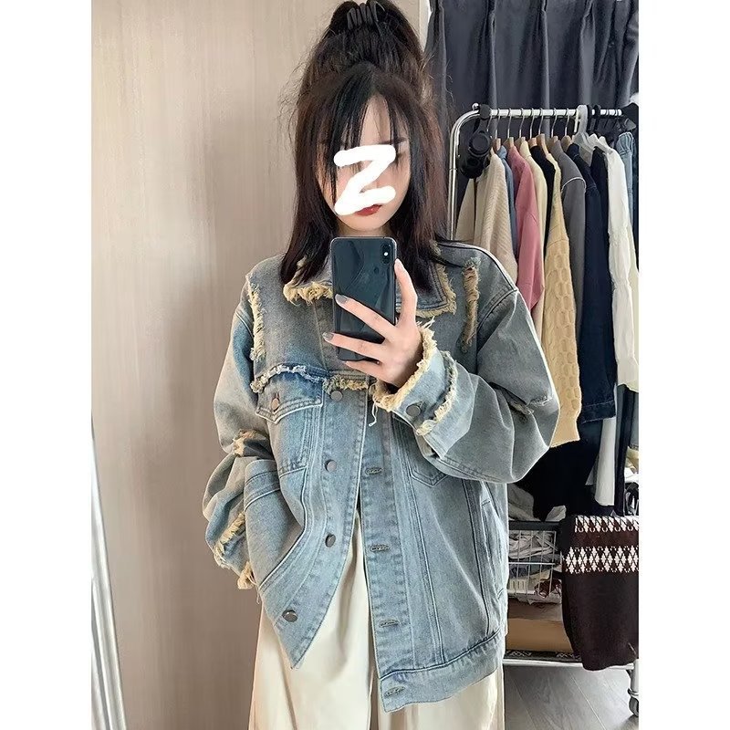 | nameOriginal | Gradient color Denim coat for women Spring and Autumn Korean style 2023 new design sense tie-dyed loose long sleeve workwear jacket fashion |