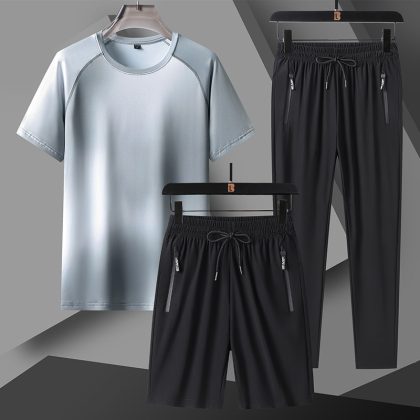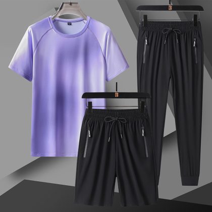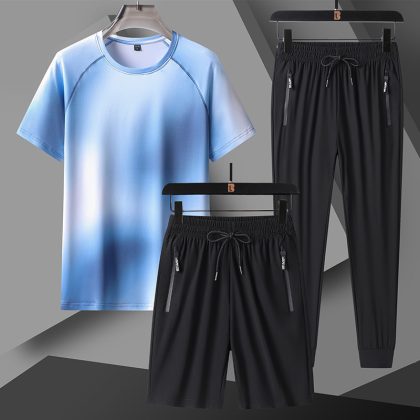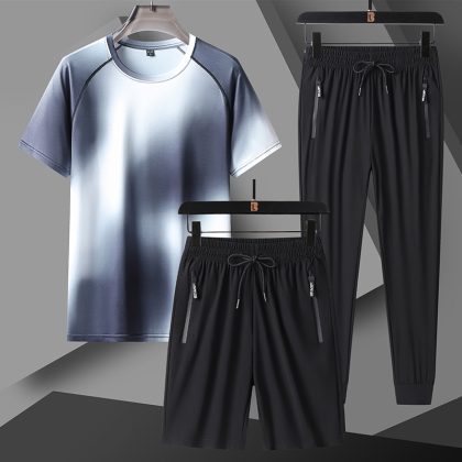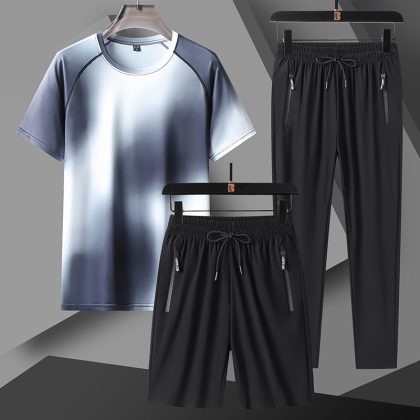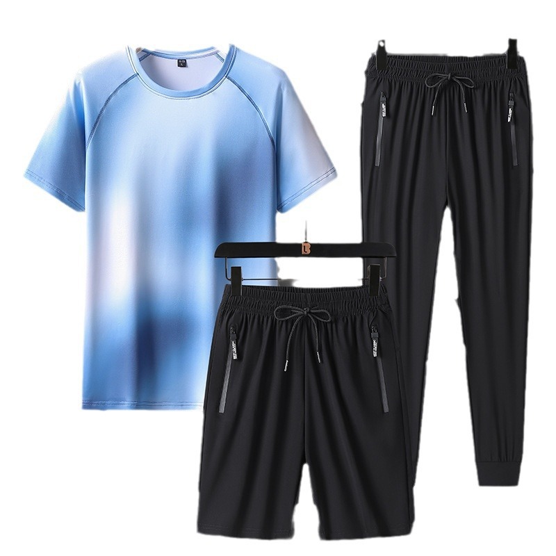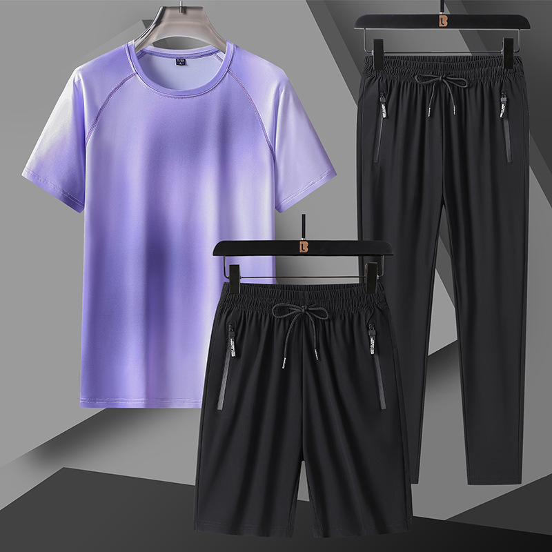 | nameOriginal | Gradient Ice Silk plus size suit Three-piece Set Men's Summer Short-sleeved Shorts Breathable Casual T-shirt Trousers Sports T-shirt suit |