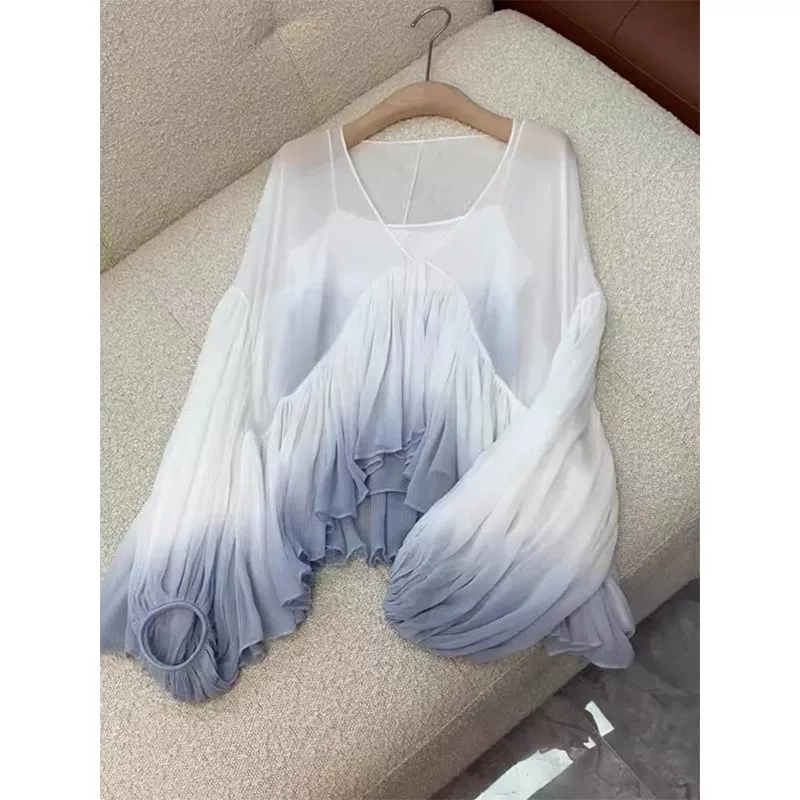| nameOriginal | Gradient pleated lantern sleeve luxury designer shirt |