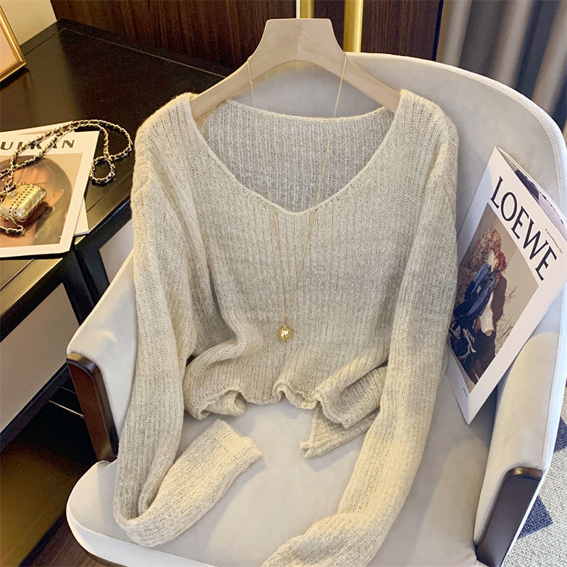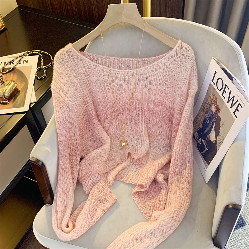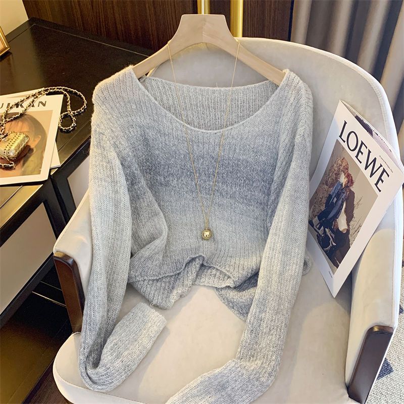 | nameOriginal | Gradient plush drop-shoulder sleeve sweater women's early spring French sweet gentle soft glutinous sexy short bottoming shirt |