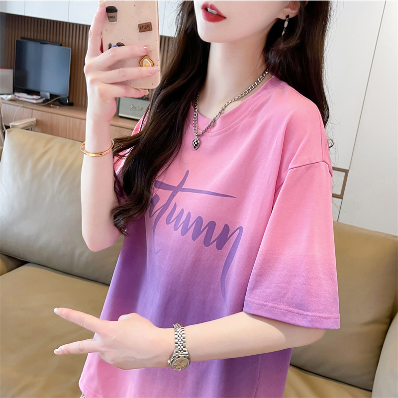 Gradient Tie-Dye Short-sleeved T-shirt Women's Summer Korean-style Loose plus size Design Sense Niche Short-sleeved Top