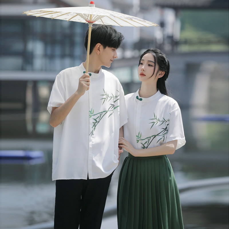 Graduation Guofeng Photo 2024 Summer New Printed Shirt Middle School Students’ Class Suit Men’s and Women’s Suit Performance Clothes