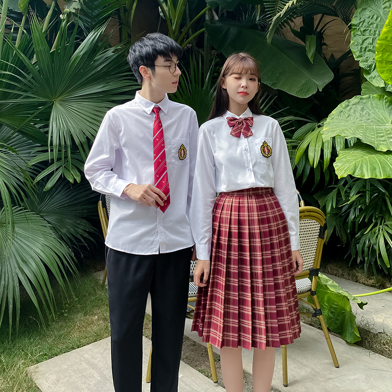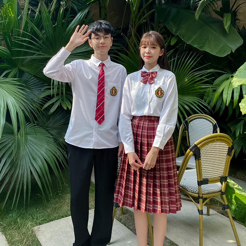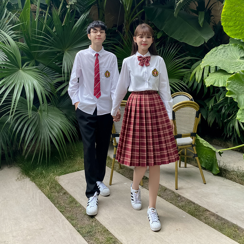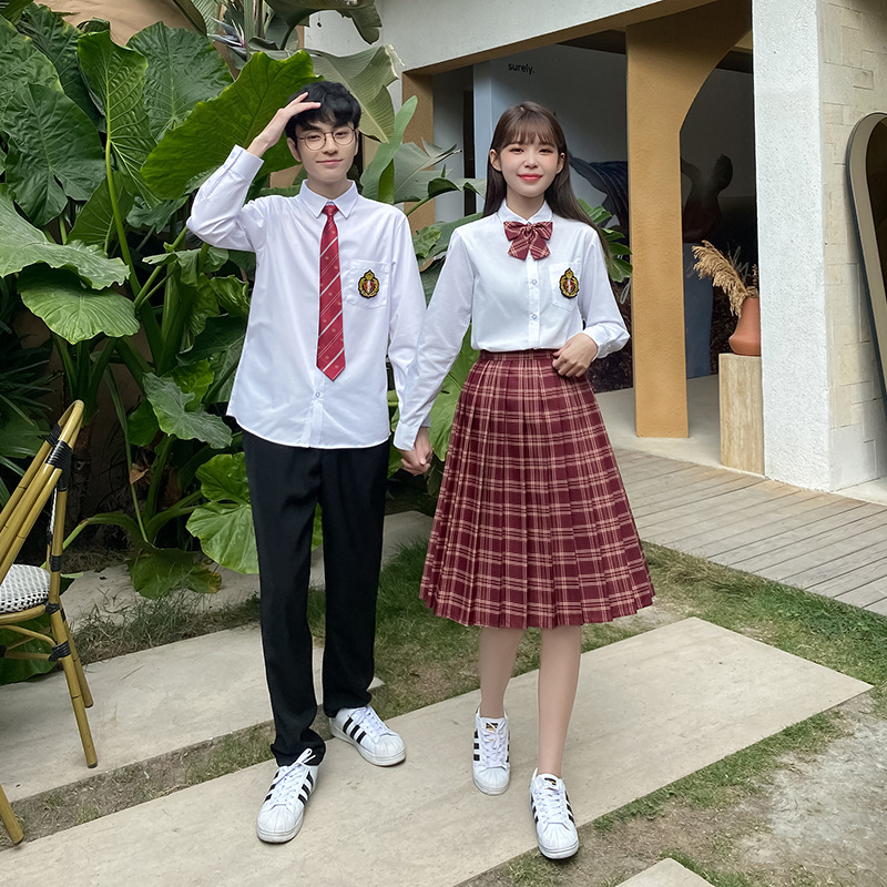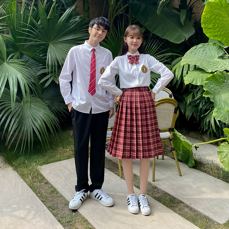 Graduation season High School students high school uniforms class uniforms spring college style amaranth red plaid skirt student outfit