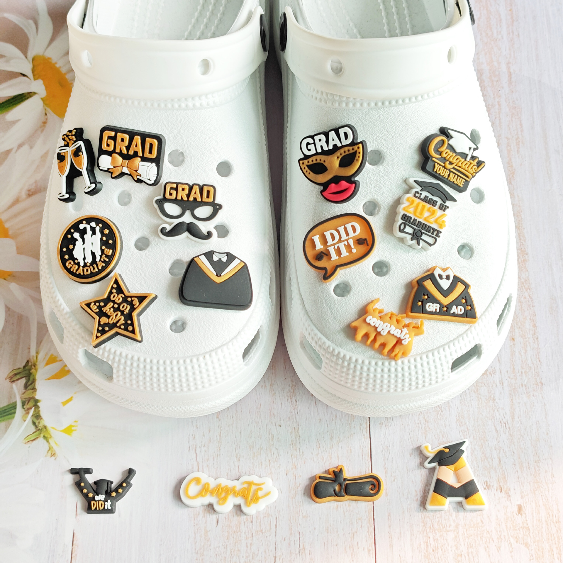 | nameOriginal | Graduation season hole shoes diy accessories doctor cap bachelor's clothing shoes flower shoe buckle PVC hole shoes accessories decorative buckle |