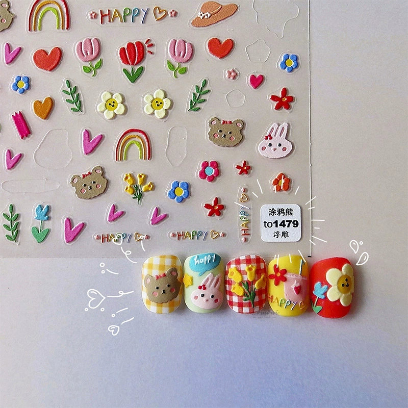 Graffiti Bear Hollow Love Cloud Nail Art Sticker